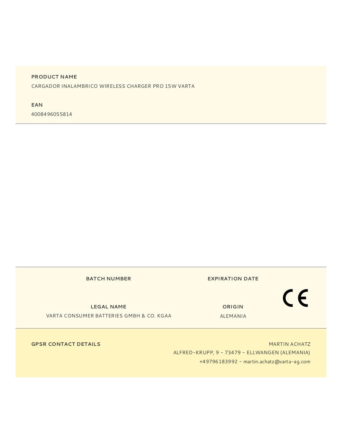 Cargador inalambrico wireless charger pro 15w varta la gama wireless charging product de varta incluye soluciones de carga inalámbrica y el cargador portátil inalámbrico 2 en 1 más innovador. rendimiento superior con la última tecnología, usb tipo c power delivery y quick charge, así como una potencia inalámbrica de hasta 15w y funciones de seguridad avanzadas para cargar teléfonos y relojes inteligentes, auriculares y otros dispositivos compatibles con qi de forma inalámbrica, rápida y eficiente.