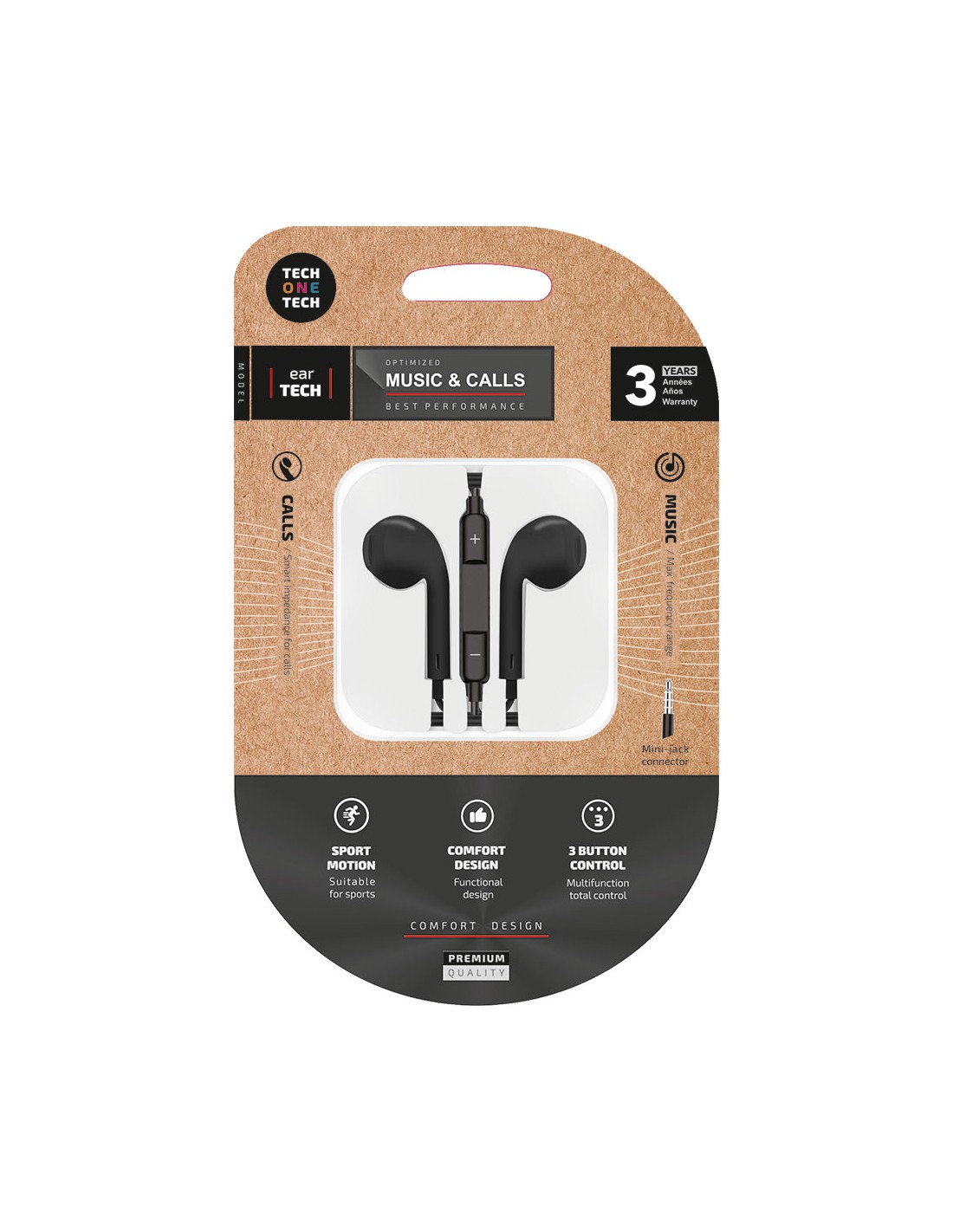 Auriculares eartech ergonómicos, sonido estéreo, con micrófono, control de volumen y tercer botón multifunción, música y llamadas.garantía de compatibilidad con dispositivos apple, android y windows. color negro, longitud de cable 1,2m, conector: mini-jack 3,5mm, frecuencia: 20 hz - 20khz, impedancia: 32 ohmios +-15%, micrófono: -42db +-3db
