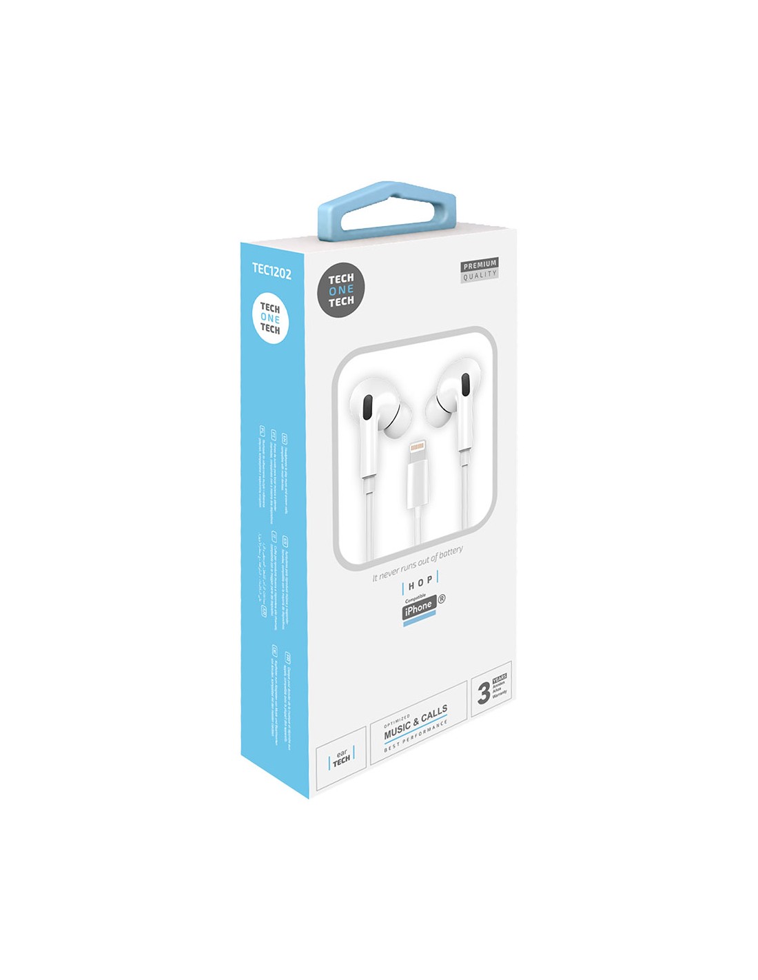 Auriculares eartech hop ergonómicos, para los que no se quieren quedar sin batería. sonido estéreo con micrófono. control de volumen y tercer botón multifunción, música y llamadas. garantía de compatibilidad con dispositivos apple. color blanco, longitud del cable 1,2m, sensibilidad: 102±3db/mw(db), conector: lightning, no necesitas adaptador para conectar a apple. frecuencia: 20 hz - 20khz, impedancia: 32 ohmios +-15%, micrófono: -42db +-3db. materiales: abs y elastómero termoplástico. atención: es necesario activar "bluetooth" en el móvil antes de conectar los auriculares. tech one tech