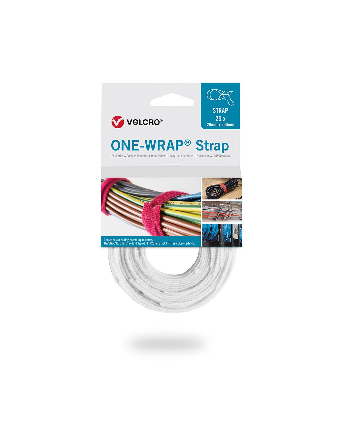 Brida one-wrap® strap 20x200mm, color blanco, 25 unidades, para la sujeción de cables, tuberías, canalizaciones