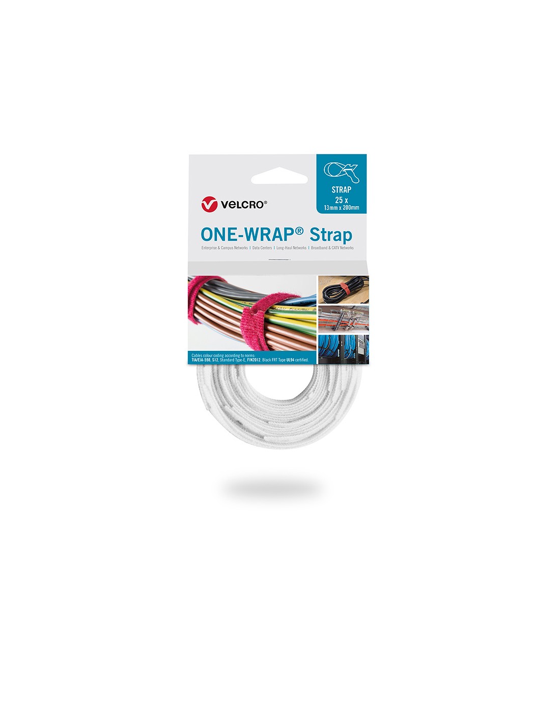 Brida one-wrap® strap 13x200mm, color blanco, 25 unidades, marca velcro®, para la sujeción de cables, tuberías, canalizaciones