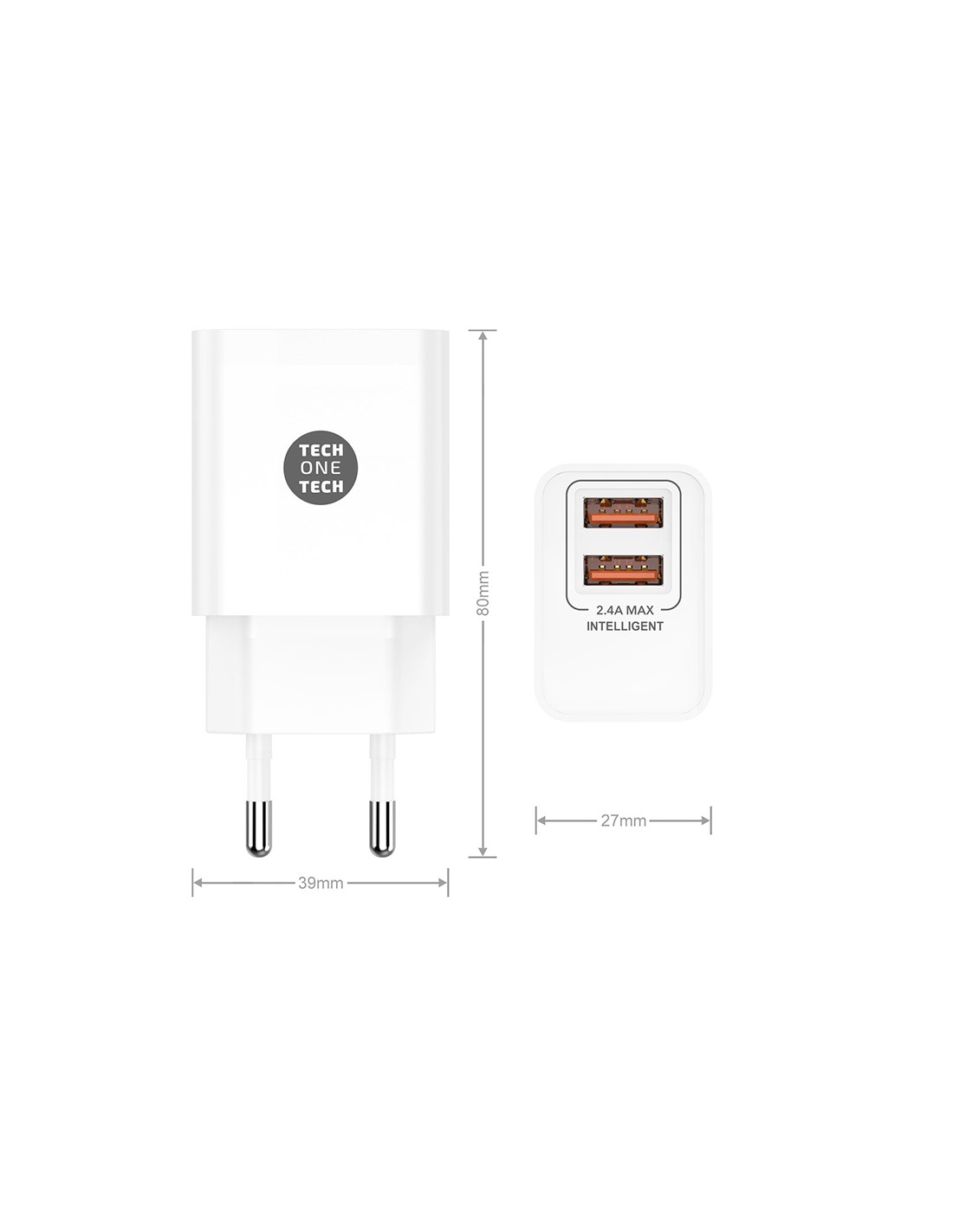Kit compuesto por cargador rápido doble, dos salidas usb de 2,4 a. color blanco, medidas 37 x 24 x 77 mm, peso 40 gramos y cable de datos y carga rápida de 1 m. de longitud, para móviles y tablets con conexión micro usb, cable recubierto de nylon trenzado y conectores metálicos para una mayor resistencia y durabilidad. 2 salidas usb inteligentes e identificación inteligente (ic), carga de manera eficiente y protege completamente su equipo.