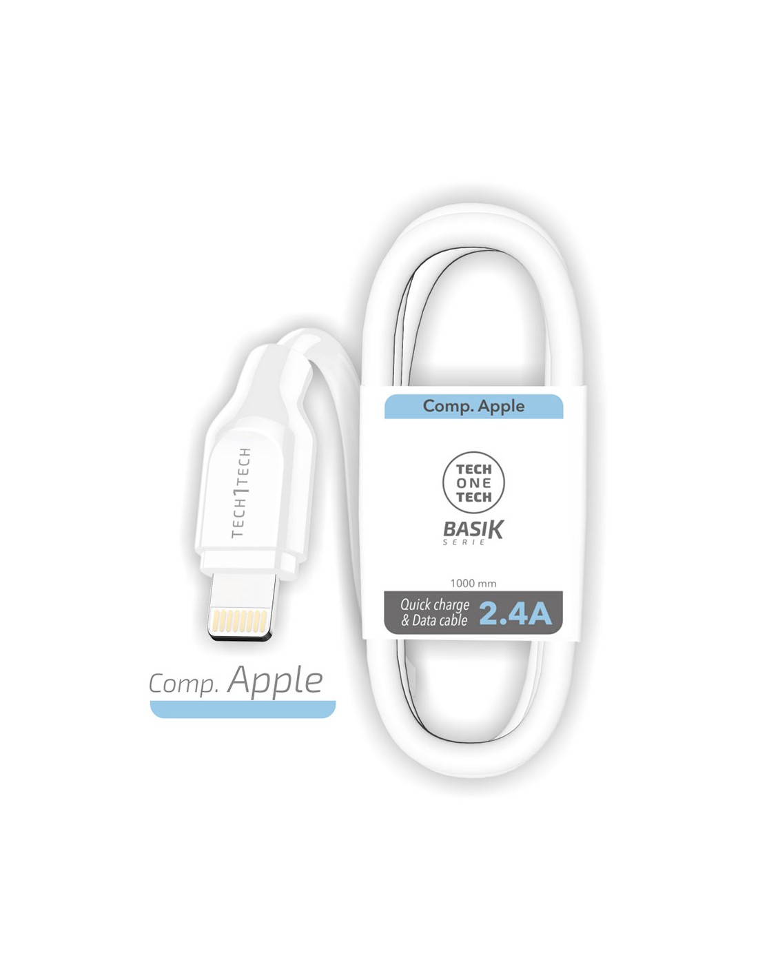 Cable bsk usb-a a lightning (apple) blanco. entrada dc 5 v, salida 2,4 a, 1 m. cable de datos y carga rápida de pvc, recubierto, trenzado y reforzado. anti-torsión y abrasión. conectores y uniones metalizados para una mayor resistencia y durabilidad. compatible con dispositivos apple / iphone, con conector lightning. normativas y seguridad: cumple con las normas de ce, fcc y rohs. multi-protecciones contra sobrecarga y cortocircuito previenen efectivamente los posibles daños a tus dispositivos