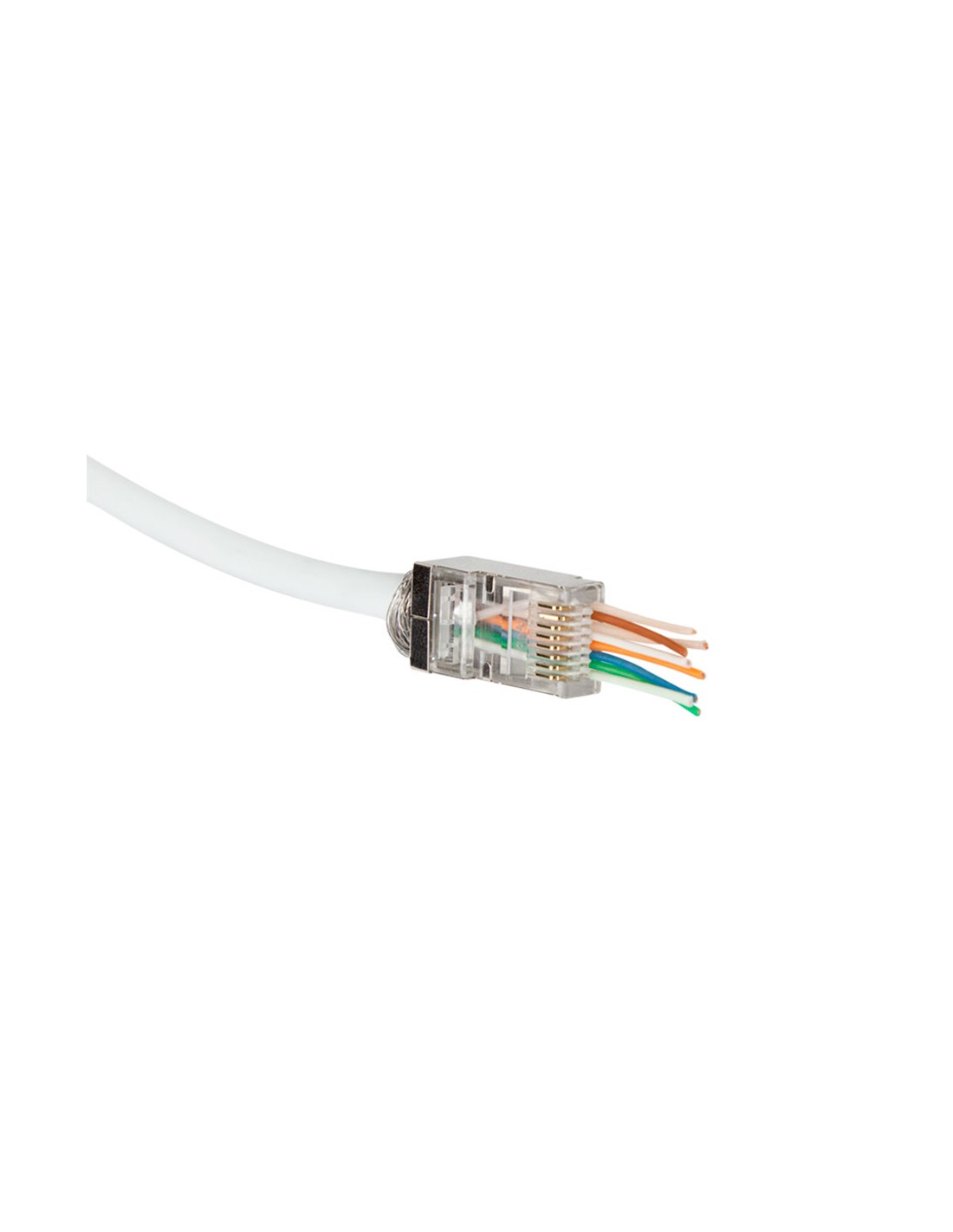 Conector modular rj45 cat.6 stp, blindado , de paso fácil conexión, adecuado para cables stp awg 24-27, diámetro máximo del cable 4,8 -6,5 mm, bolsa de 50 uds