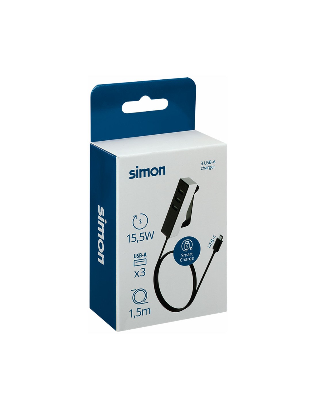 Adaptador 3 usb a con fijación 3 usb a 3a cada uno, incluye cable usb c de 1,5 m negro. 94 x 24 x 22 mm