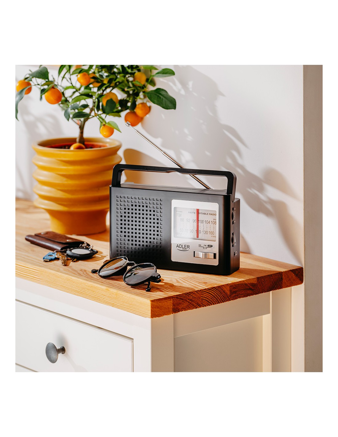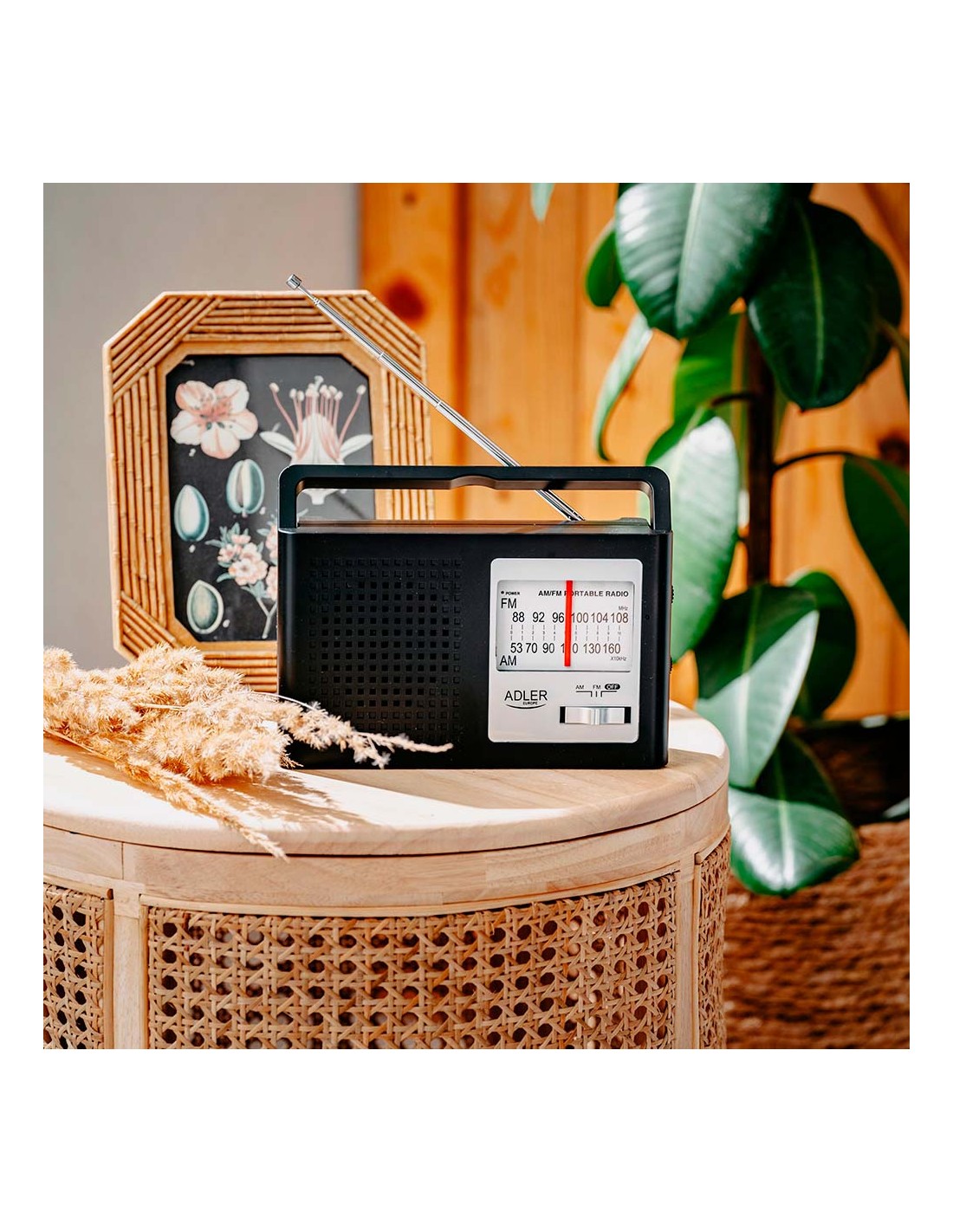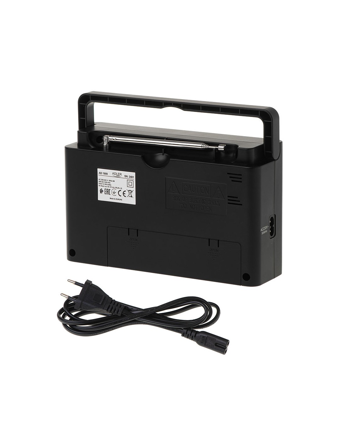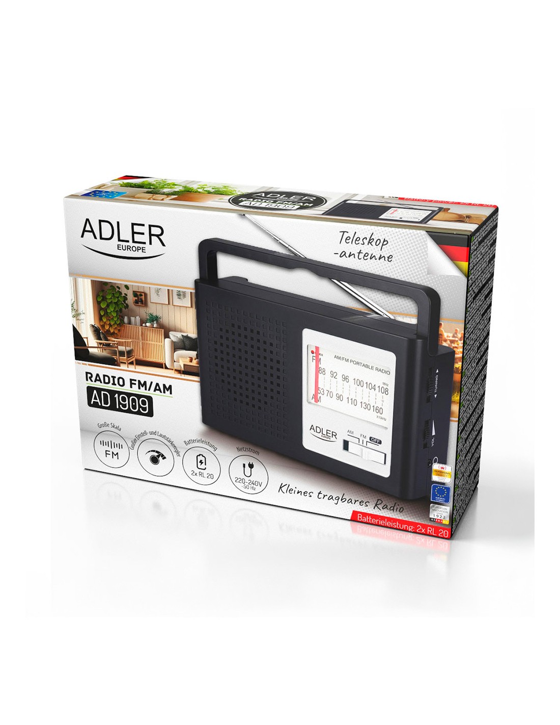 Radio portatil am/fm rangos am 522-1620 khz y fm 87.5-108.0 mhz minijack para salida de audio dial grande y claro para una sintonizacion precisa y facil antena telescopica alimentación 220-240v~ 50 hz o pilas 2 x rl20 (d) 15.5 x 21 x 6 cm