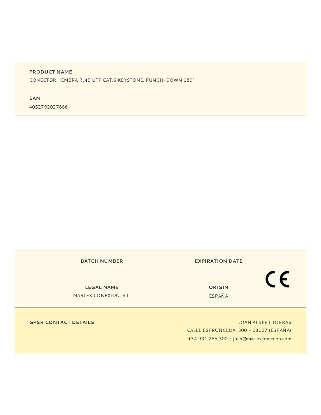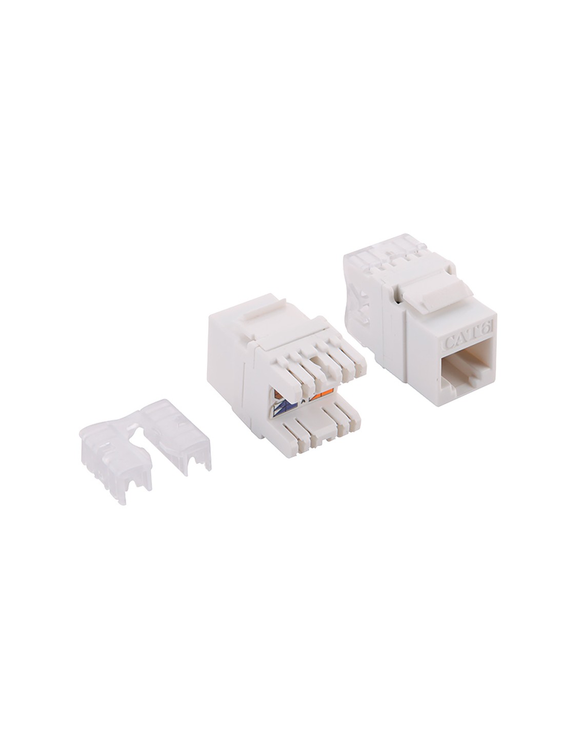 Conector hembra rj45 utp cat.6 keystone, punch-down 180°, awg 23-26. color blanco