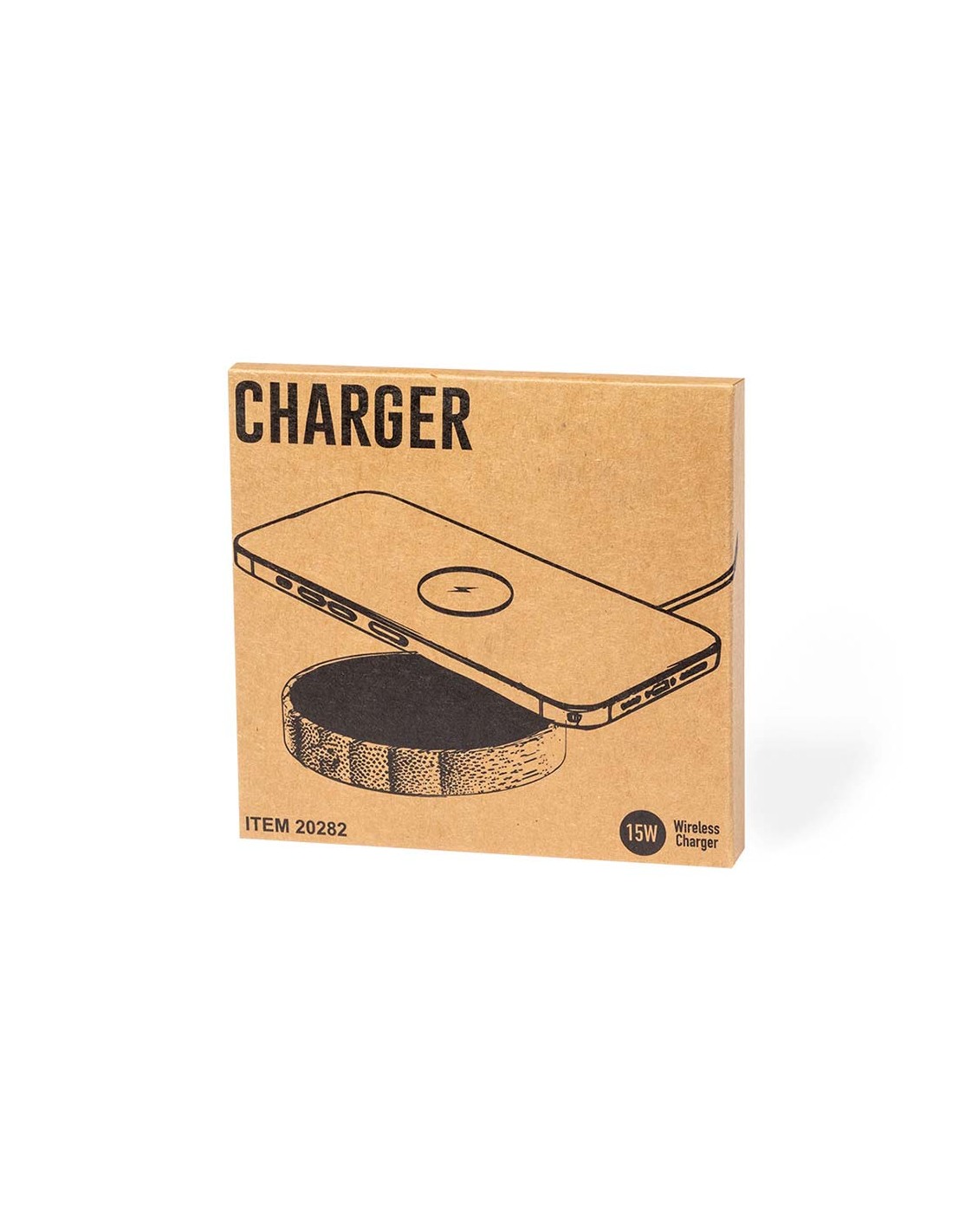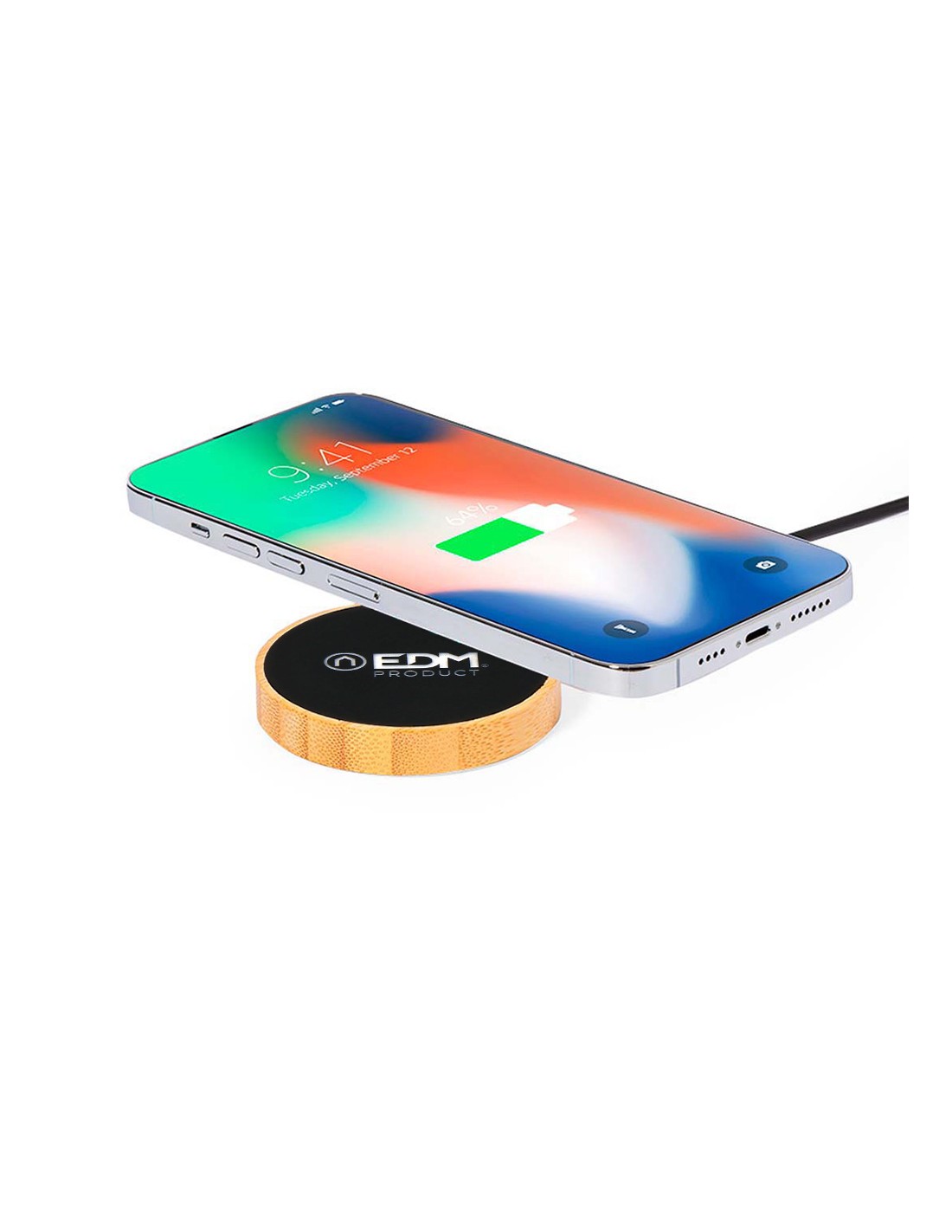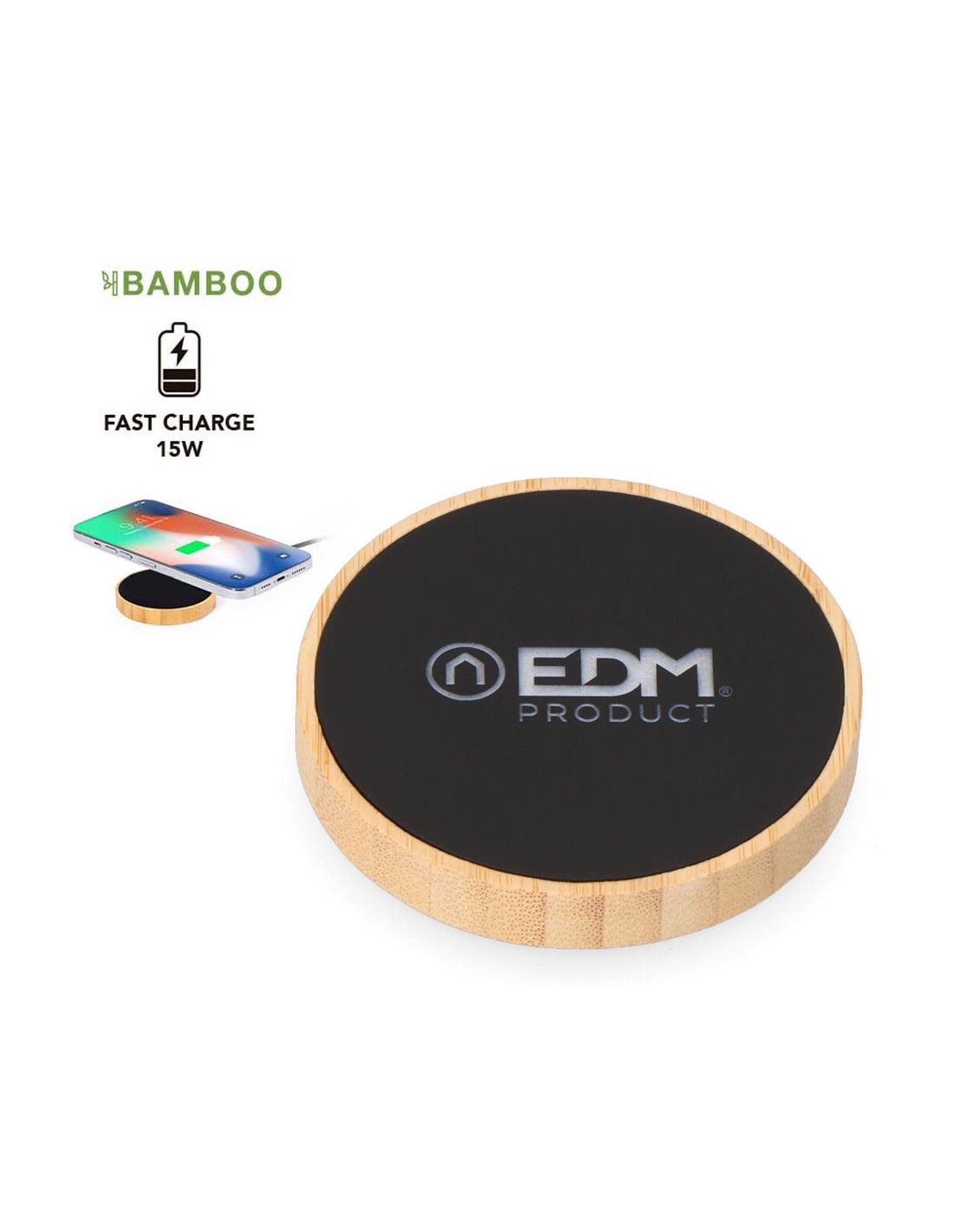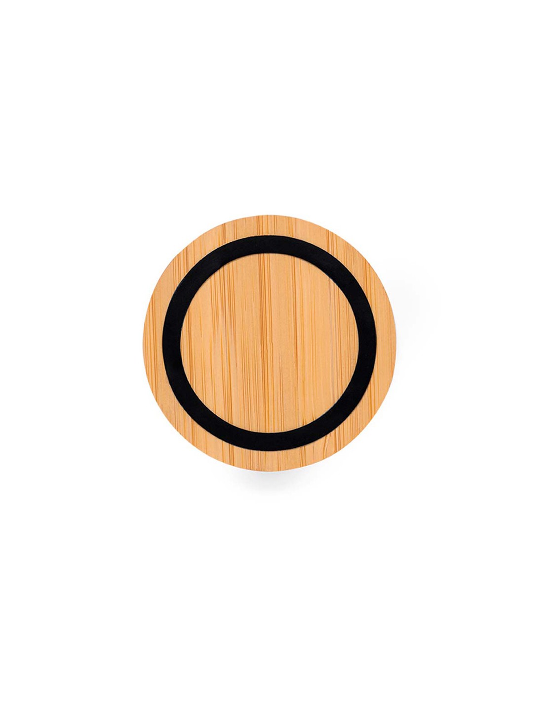 Cargador inalámbrico circular, función de carga 15 w luz led interior fabricado en bambú compatible con dispositivos equipados con tecnología de carga inalámbrica qi base antideslizante, incluye cable cargador tipo c ø6,8 x 1,1 cm