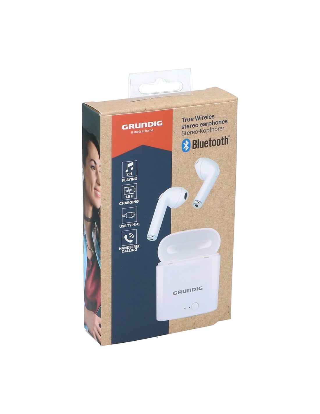 Auriculares inalámbricos earbuds con micro bluetooth con estuche blanco, carga con cable usb tipo c incluido, tiempo de carga 1,5 h, tiempo de reproducción 2 h