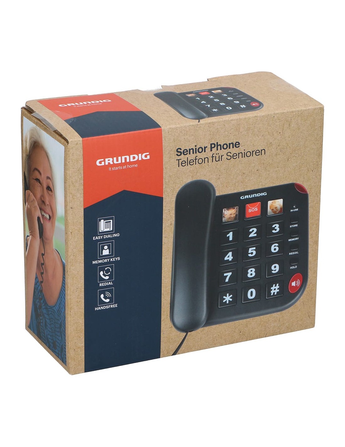 Teléfono senior con manos libres y registro de contactos de emergencia. medidas: 19 x 17,5 x 8 cm