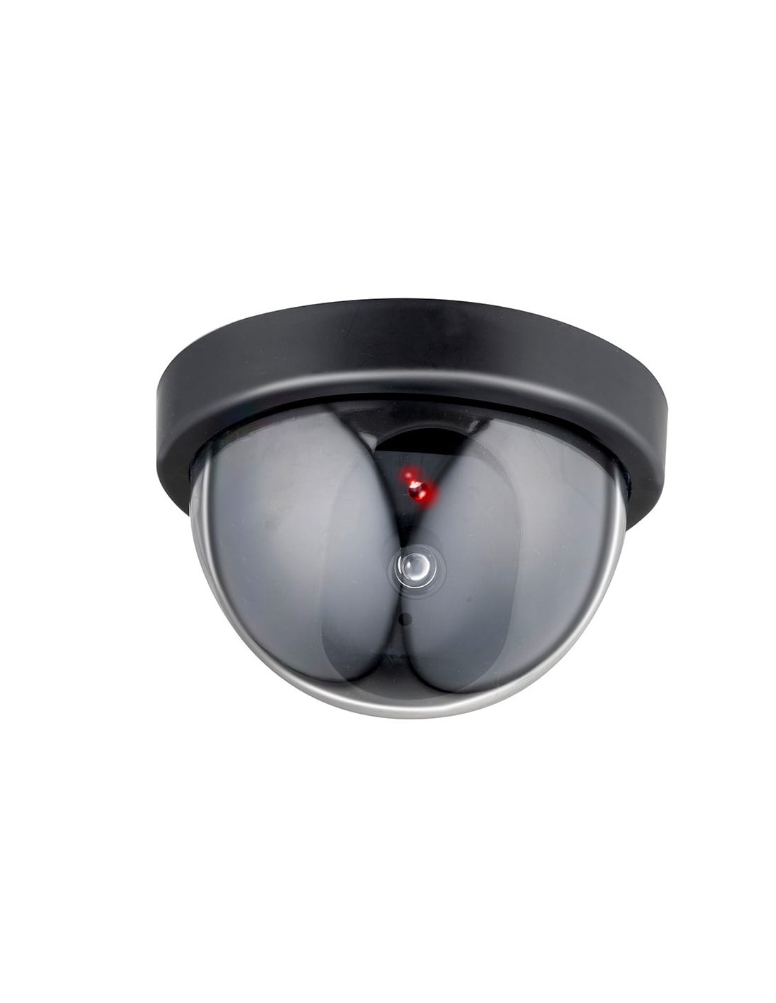Cámara seguridad simulada tipo domo color negro, funciona con pilas 2 x aa ( no incluidas), incluye kit de instalación, ø11 x 9 cm