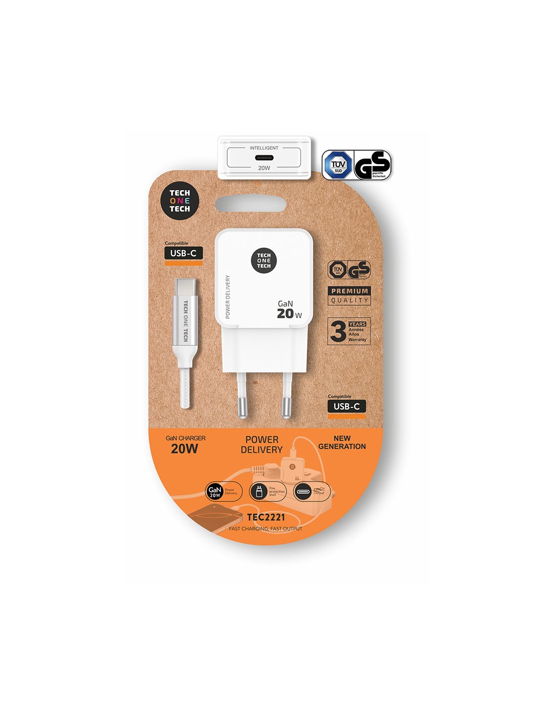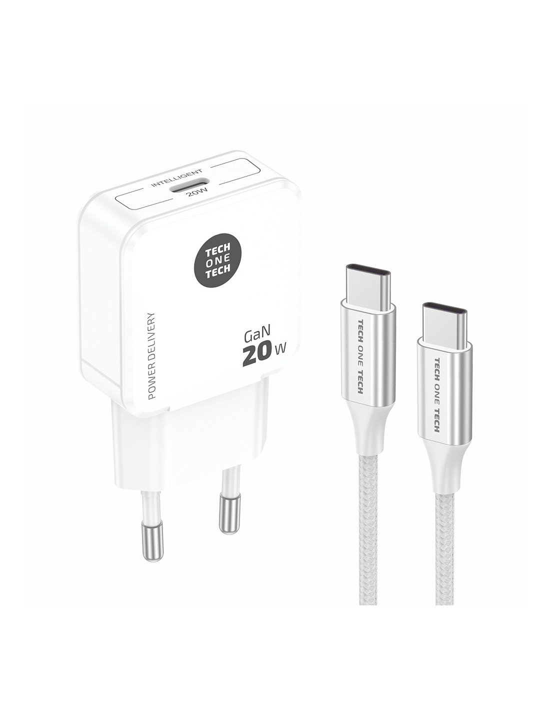 Cargador gan power delivery 3.0 20 w hasta un 400% más rápido que un cargador estándar de 5w, usb-c de 3a, puertos de salida inteligente que se comunican con el dispositivo cargado, suministrando la potencia necesaria y requerida, smart recognition, fire retardant shell cumple con norma tüv gs, ce, fcc, raee y rohs. multi-protecciones contra sobrecarga y cortocircuito previenen efectivamente los posibles daños a tus dispositivos incluye cable de datos y carga rápida tec2204 usb-c 1 m de nylon, recubierto, trenzado, reforzado, anti-torsión y abrasión. tensión de salida: 5v-3a / 9v-2.2a / 12v-1.67a 100 - 240v~ 50 - 60 hz blanco 78 x 40 x 25 mm