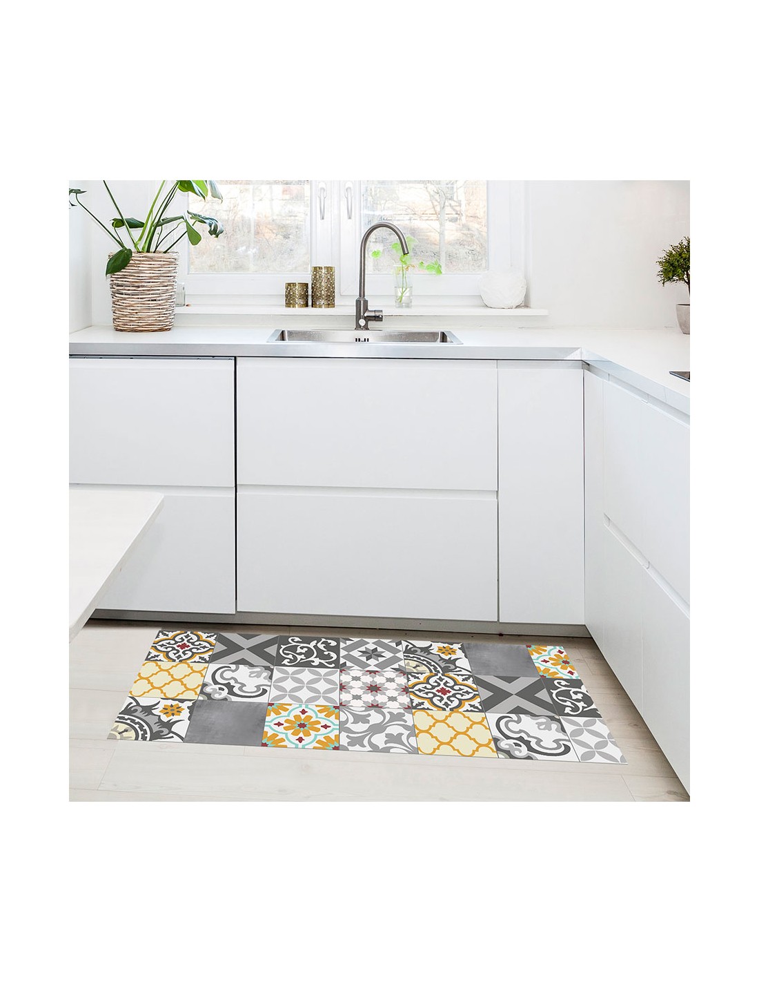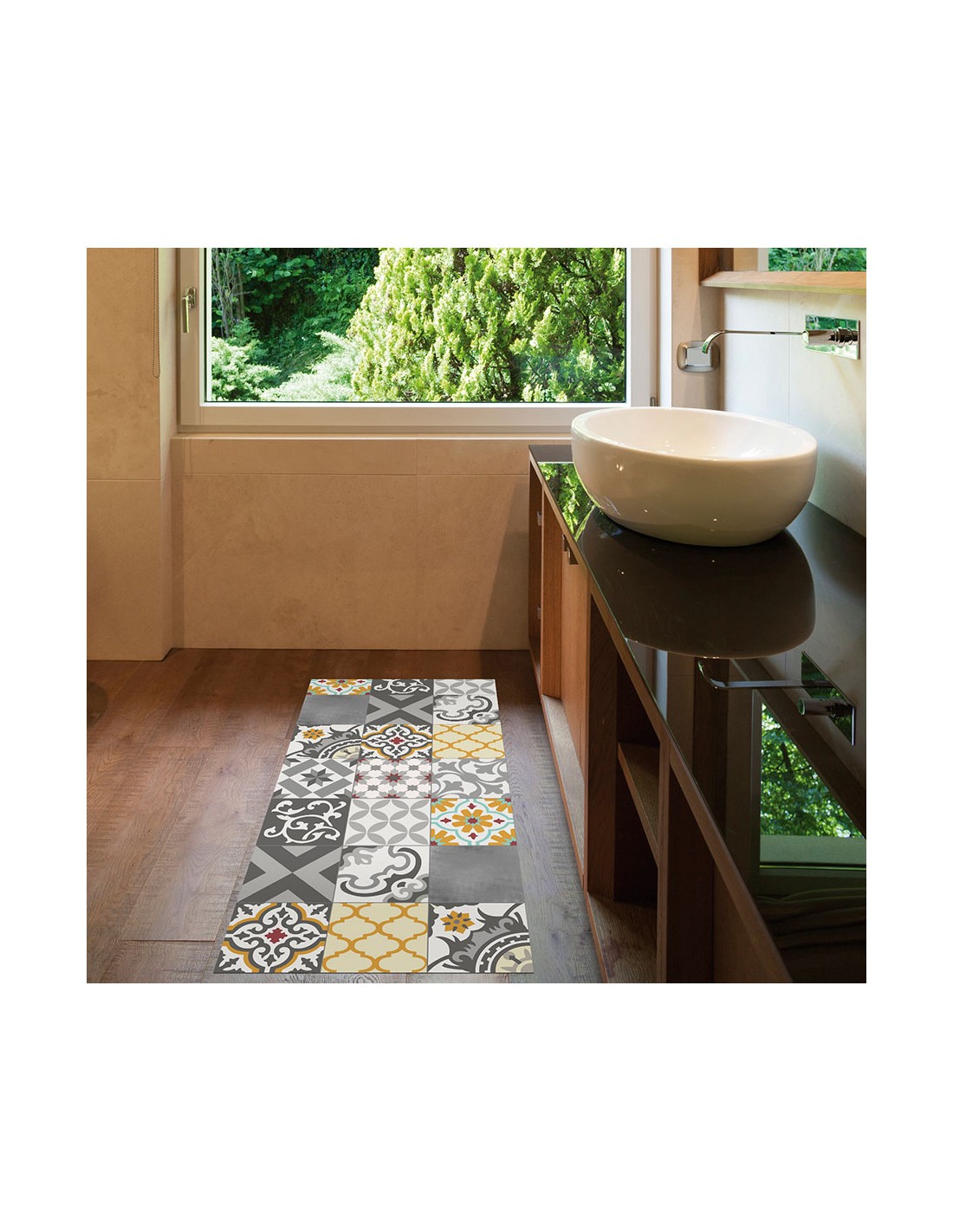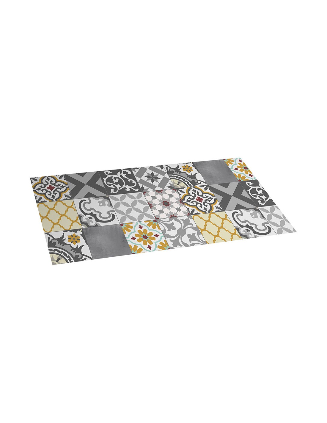 Alfombra vinilica croma patch gris-ambar 50x110cm . base antideslizante. superficie lavable. facil mantenimiento.