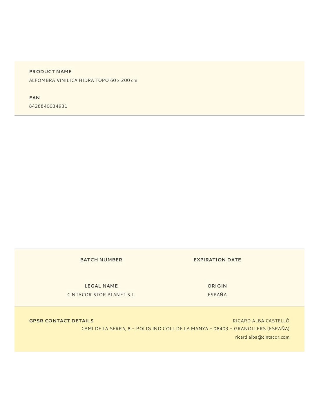 Alfombra vinilica hidra topo 60x200cm. base antideslizante. superficie lavable. facil mantenimiento.