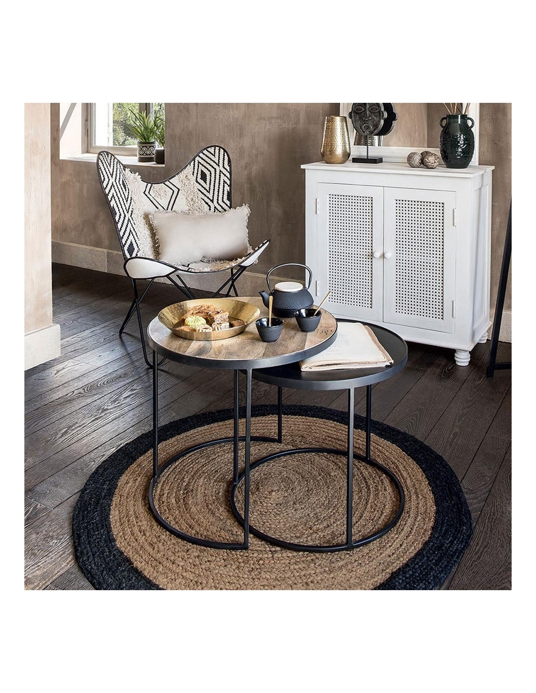 Alfombra arpillera negra ø120cm atmosphera