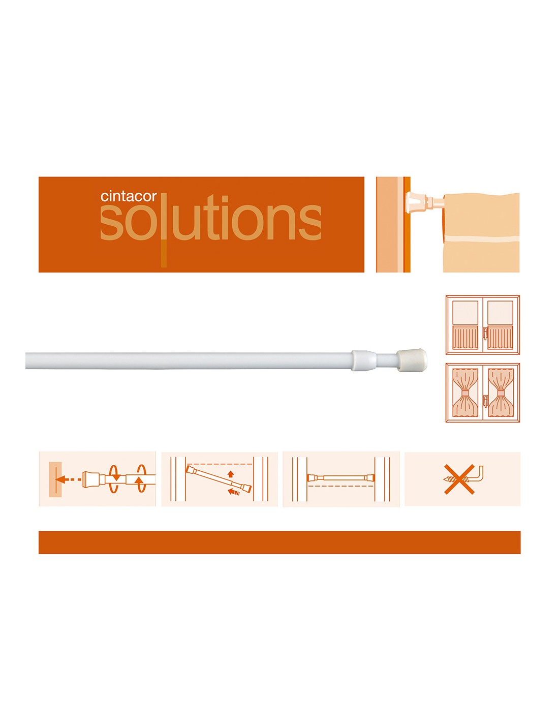 Portavisillo extensible modelo rosca de color blanco para instalar sin tornillos. logitud 300/450. fijación a presión. instalación a ventanas cintacor - storplanet