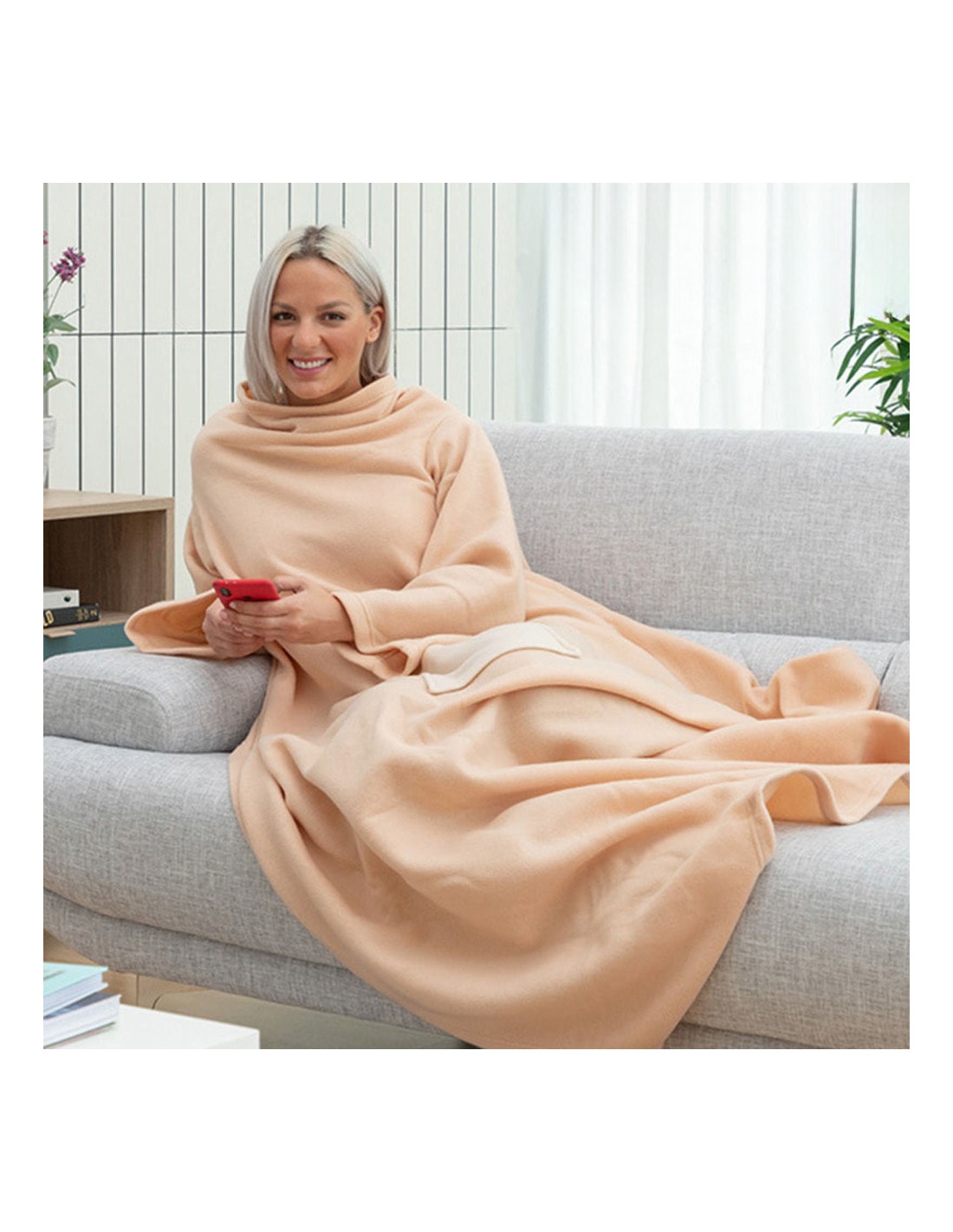 Batamanta individual con bolsillo central faboulazy innovagoods una confortable y cálida batamanta individual con un diseño renovado ideal para estar cómodo y abrigado en casa durante el frío invierno. material: poliéster tejido: suave. diseño innovador y funcional. bolsillo central amplio: 20x25cm. uso cómodo y sencillo: ligero y manejable. medidas aprox.: 130x170cm color beige