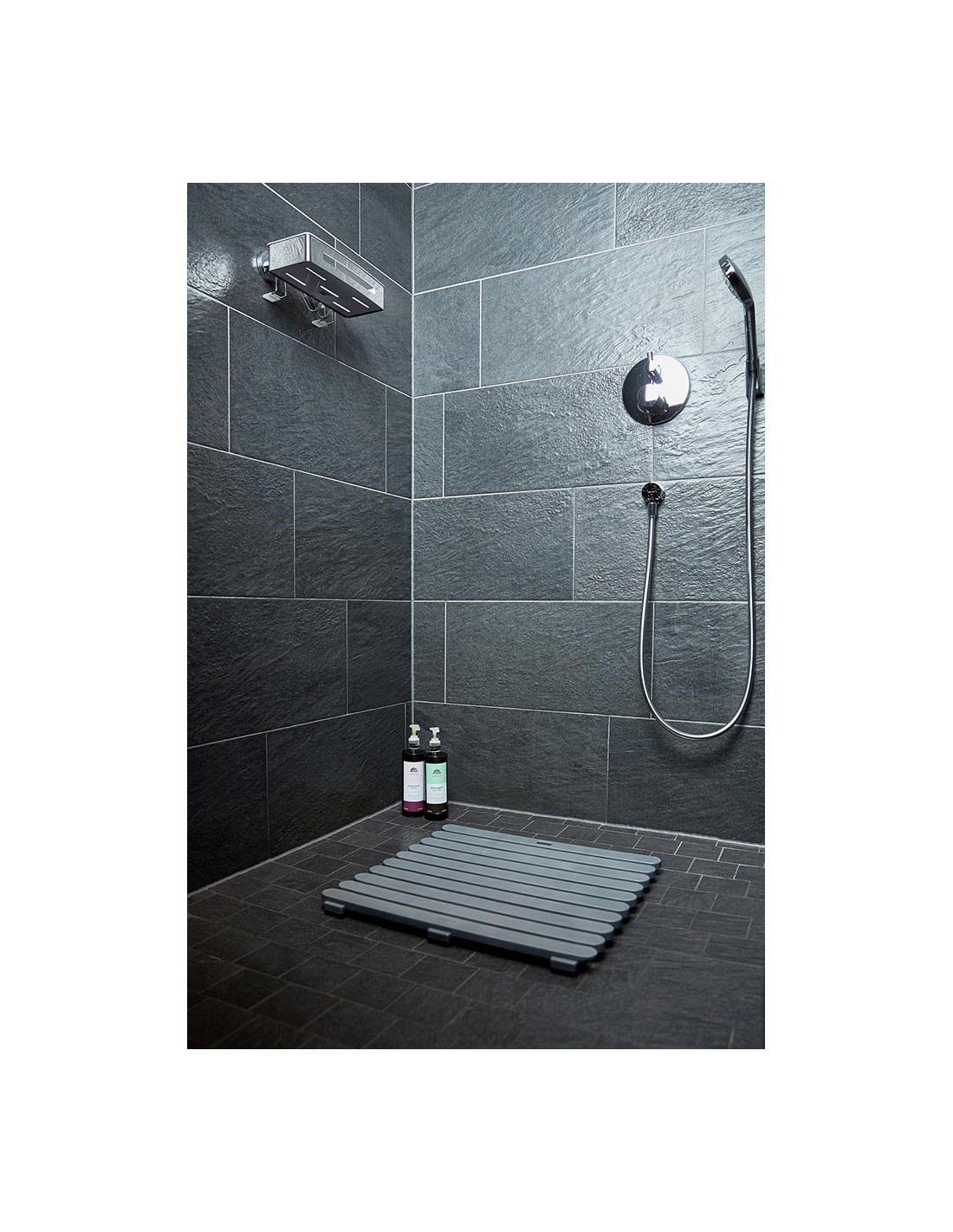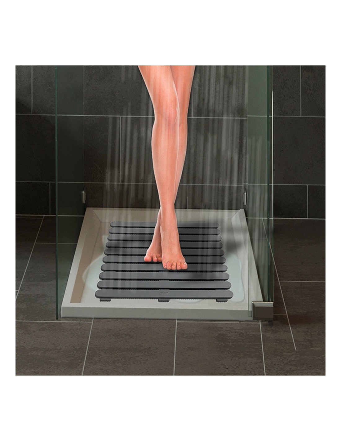 Tarima de baño in/outdoor 55x55cm gris. de plástico resistente y con estructura antiresbalante. ideal para la ducha, el baño, la sauna y la zona alrededor de la piscina.