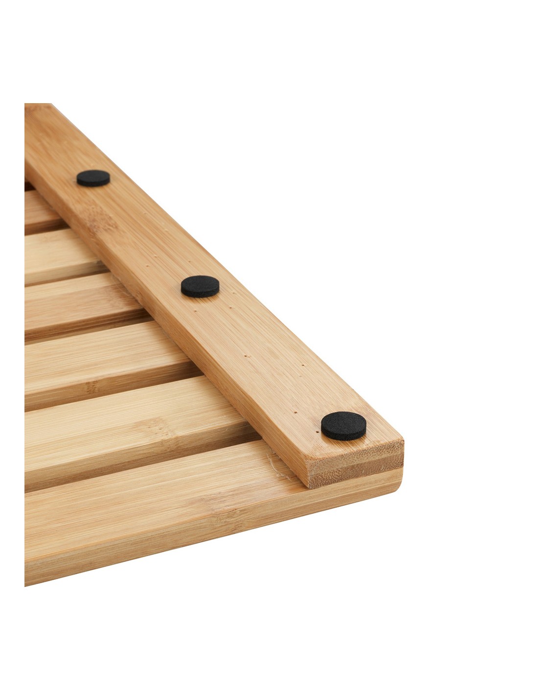 Tarima in/outdoor 60x40cm bambú. a base de bambú. ideal para la ducha, el baño y la zona alrededor de la piscina. dorso recubierto antideslizante.