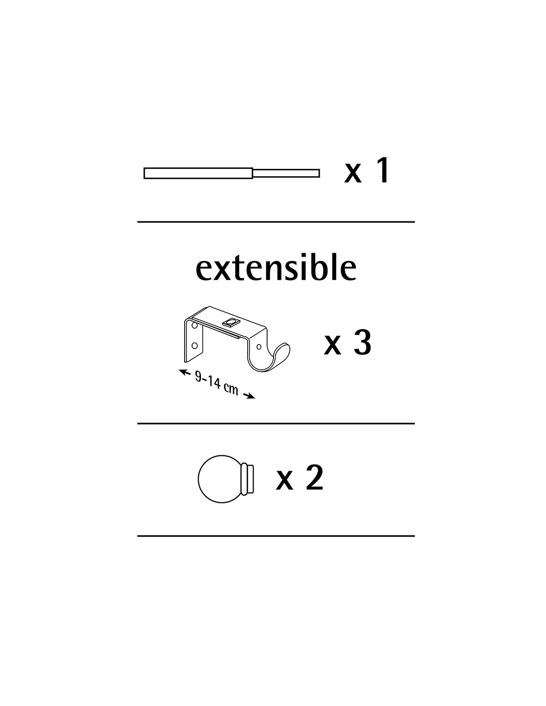 Kit metal 19mm esfera anillo negro 160-300cm cintacor - storplanet. barras completas en formato de kit. contienen los componentes necesarios para la instalación.