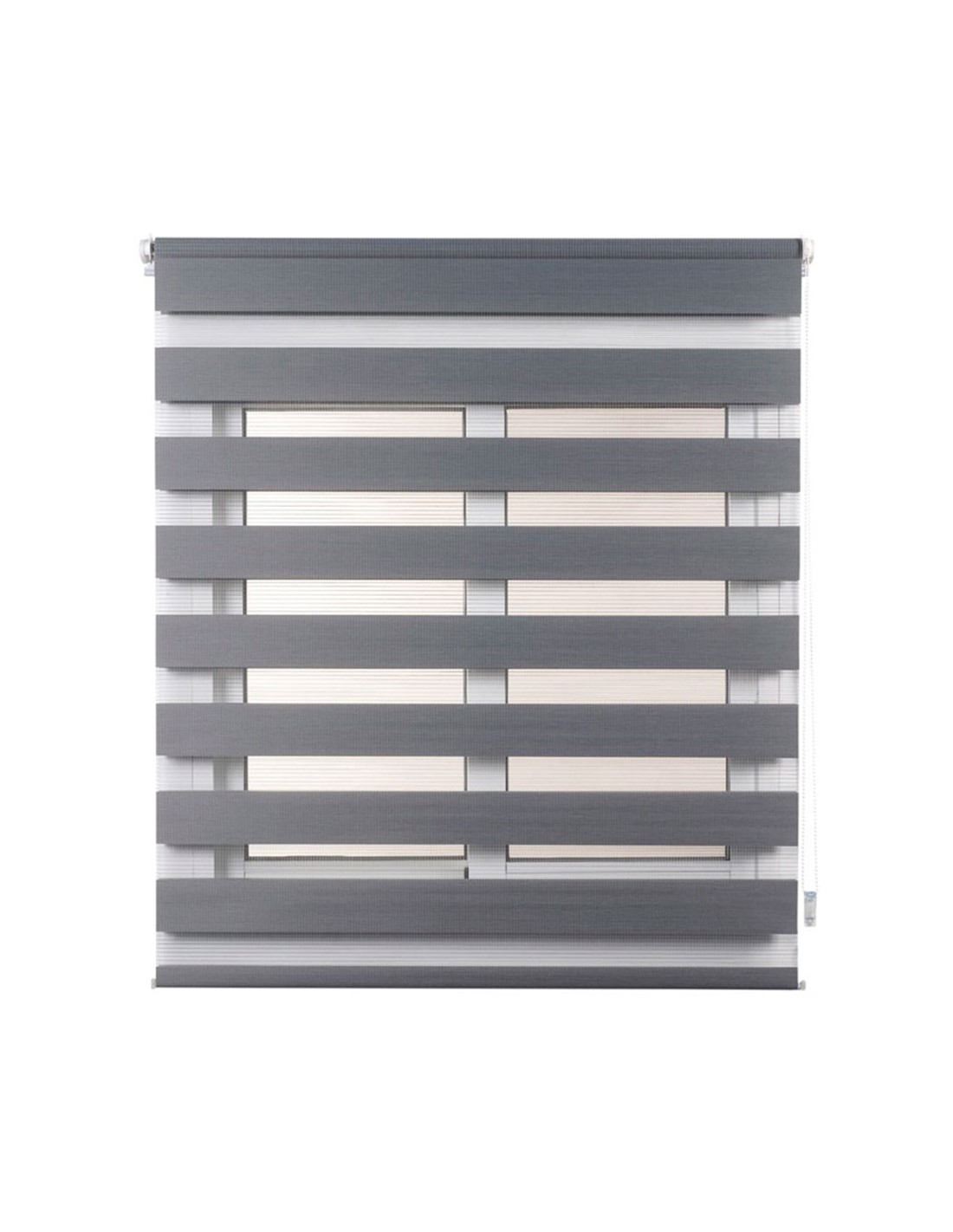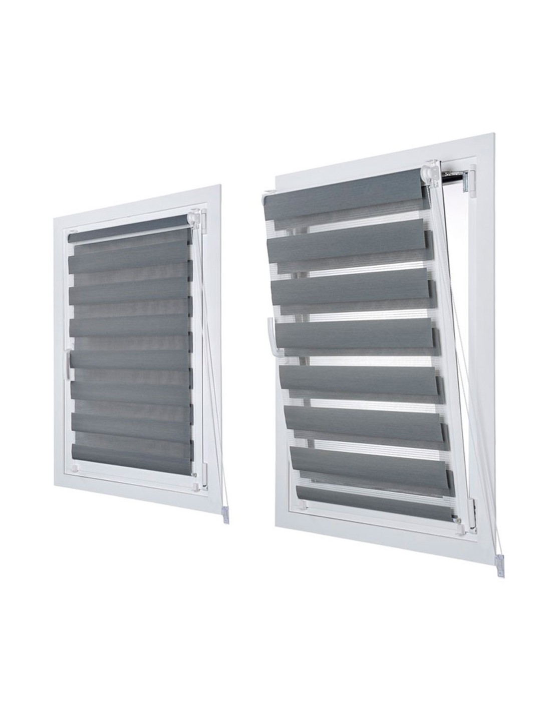Estor enrollable clip&fix noche&dia plata 150x180c .estor enrollable noche y día pragmático y versátil por sus diferentes opciones de instalación: la convencional a techo o pared, o la instalación en el marco de la ventana de pvc o aluminio, sin perforar. su tejido de franjas transparentes aporta el control de luz y visión del exterior. opción de bloqueo inferior que impide el movimiento libre del estor. se incluyen todos los accesorios necesarios. cintacor - storplanet