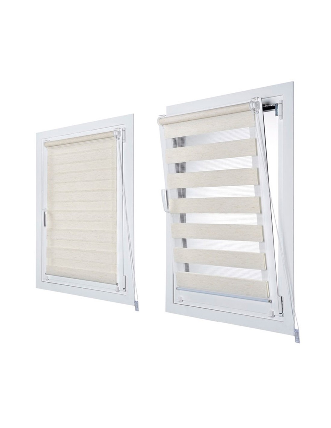 Estor enrollable clip&fix noche&dia lino 120x180cm. estor enrollable noche y día pragmático y versátil por sus diferentes opciones de instalación: la convencional a techo o pared, o la instalación en el marco de la ventana de pvc o aluminio, sin perforar. su tejido de franjas transparentes aporta el control de luz y visión del exterior. opción de bloqueo inferior que impide el movimiento libre del estor. se incluyen todos los accesorios necesarios. cintacor - storplanet