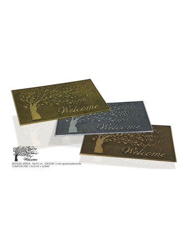Felpudo de goma árbol welcome colores surtidos 75x45x0,5cm hidalgo. resistente a la intemperie.y de fácil limpieza. composición caucho y goma.