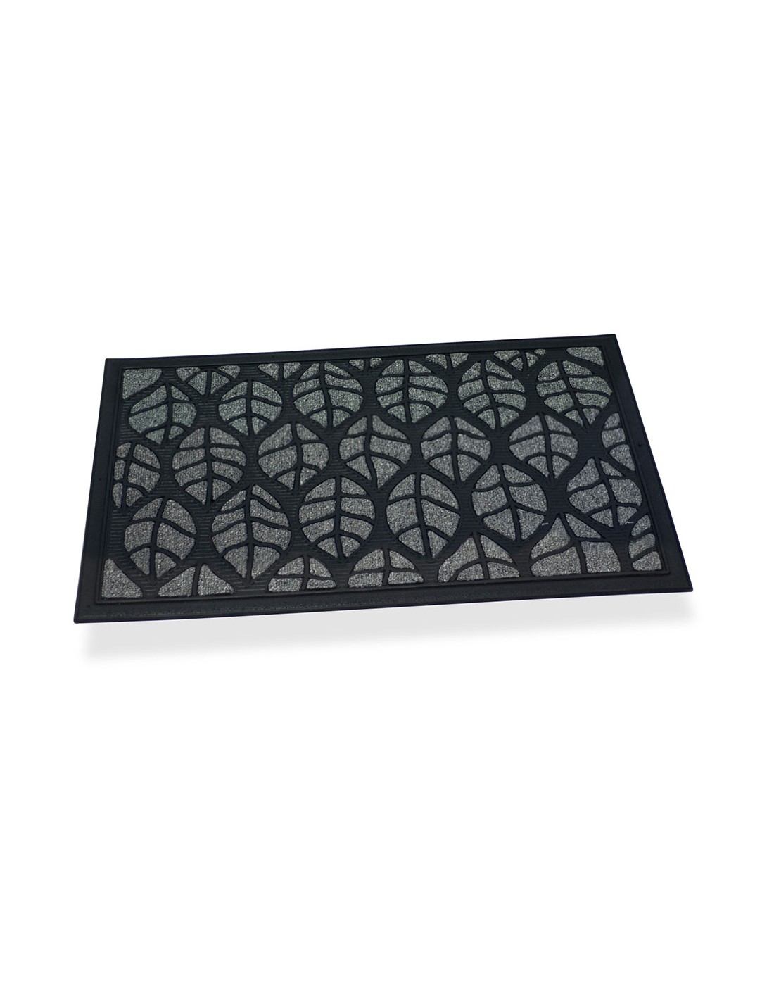 Felpudo goma/moqueta hojas gris 75x45x0,5cm hidalgo