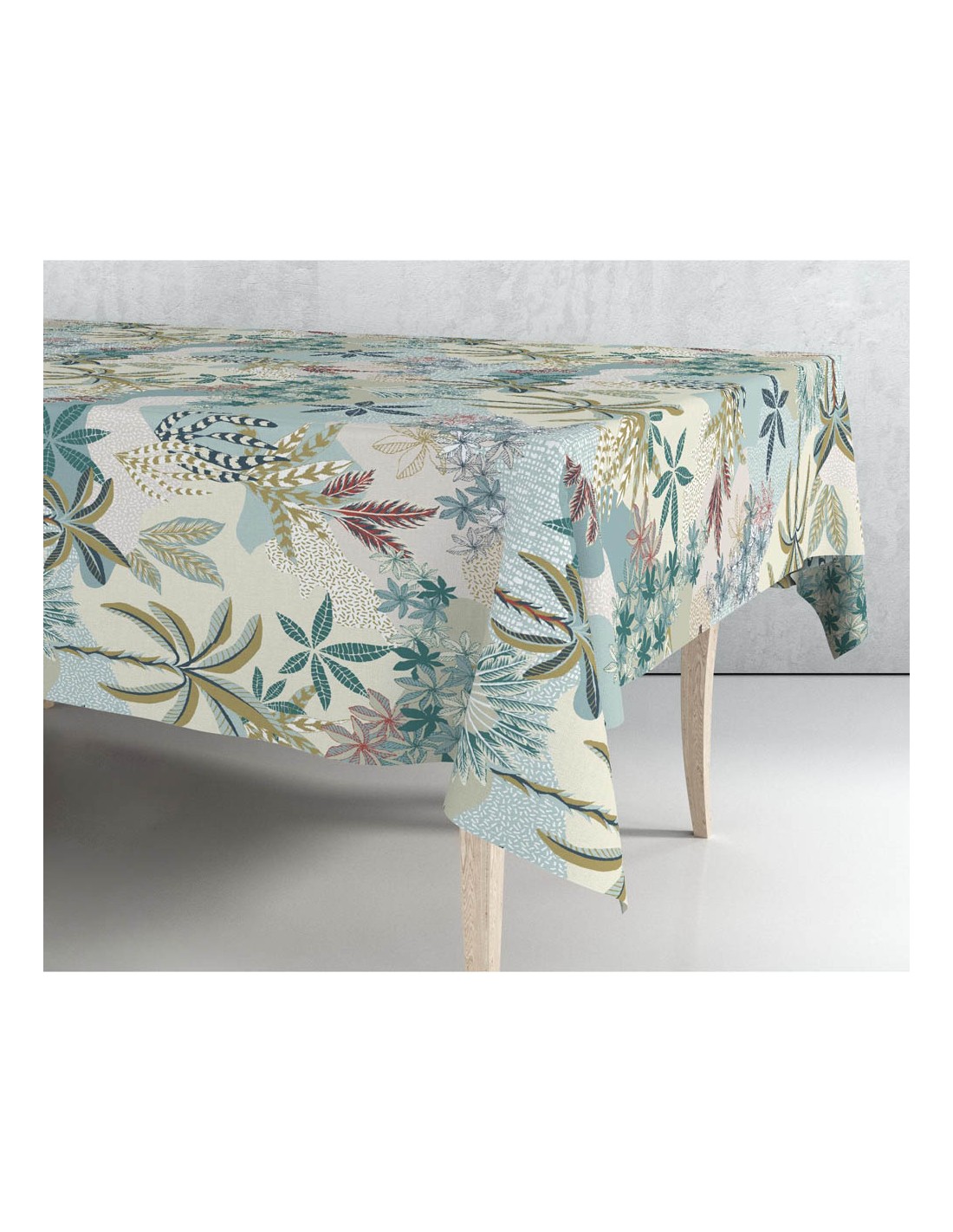 Rollo de hule mantel mix 140cm x 25m exma. mantelería de hule gama básica, ancho de 140cm, 25m por rollo, hojas bambú tonalidades en blanco,gris,azul. composición de lámina pvc con base de tejido sin tejer. no lavable, limpieza con paño húmedo en superficie.