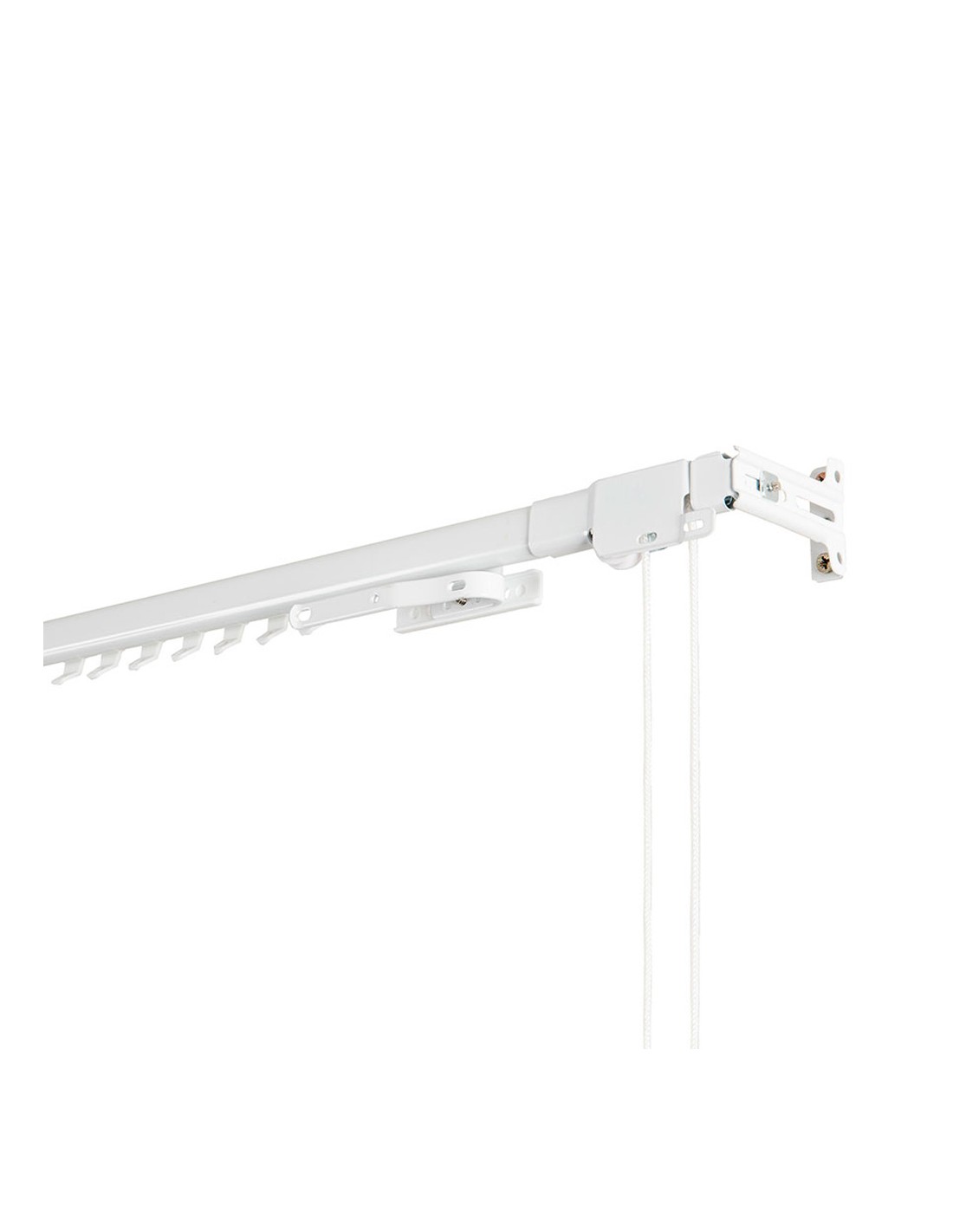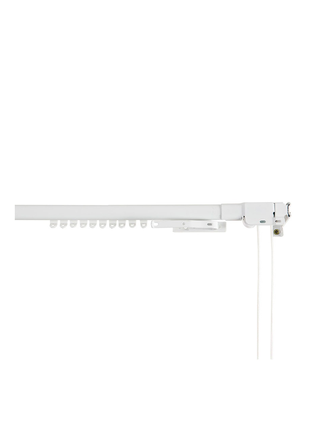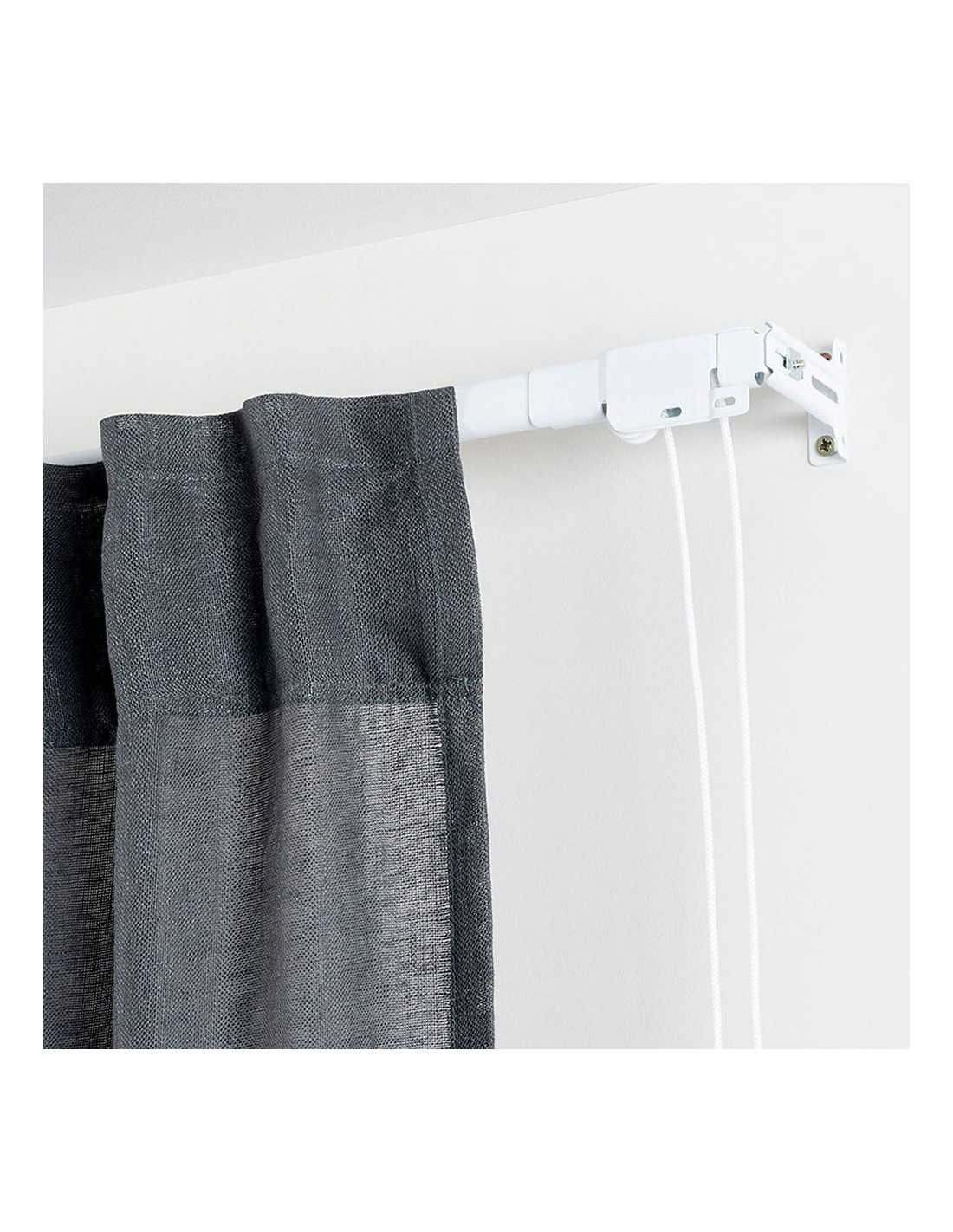 Riel extensible para cortinas fabricado en metal de color blanco. incluye soportes, tacos, tornillos, 1 corredera maestra y 10 correderas. cintacor - storplanet