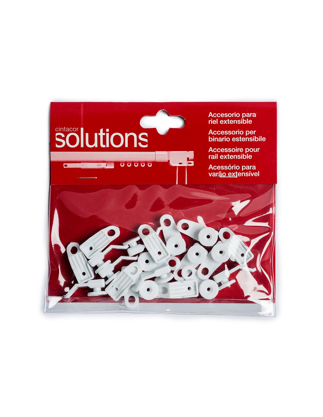Correderas para colgar cortinas en riel de color blanco. el precio incluye 20 unidades.