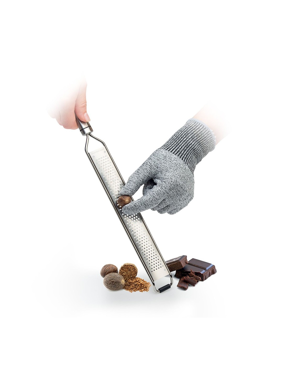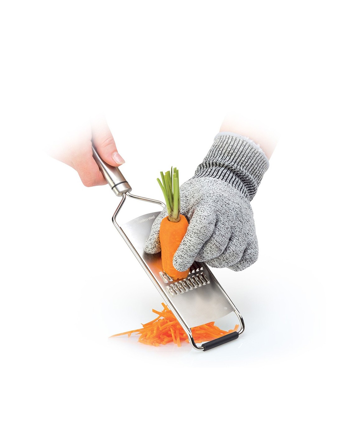Guante protector presto, talla l. protege la mano de lesiones rallando, pelando, raspando y cortando frutas y verduras utilizando ralladores afilados, peladores y cuchillos, partiendo y deshuesando carne, pescado, etc fabricado de fibras sintéticas especiales altamente resistentes, adecuado para diestros y zurdos. garantía de 3 años. tescoma