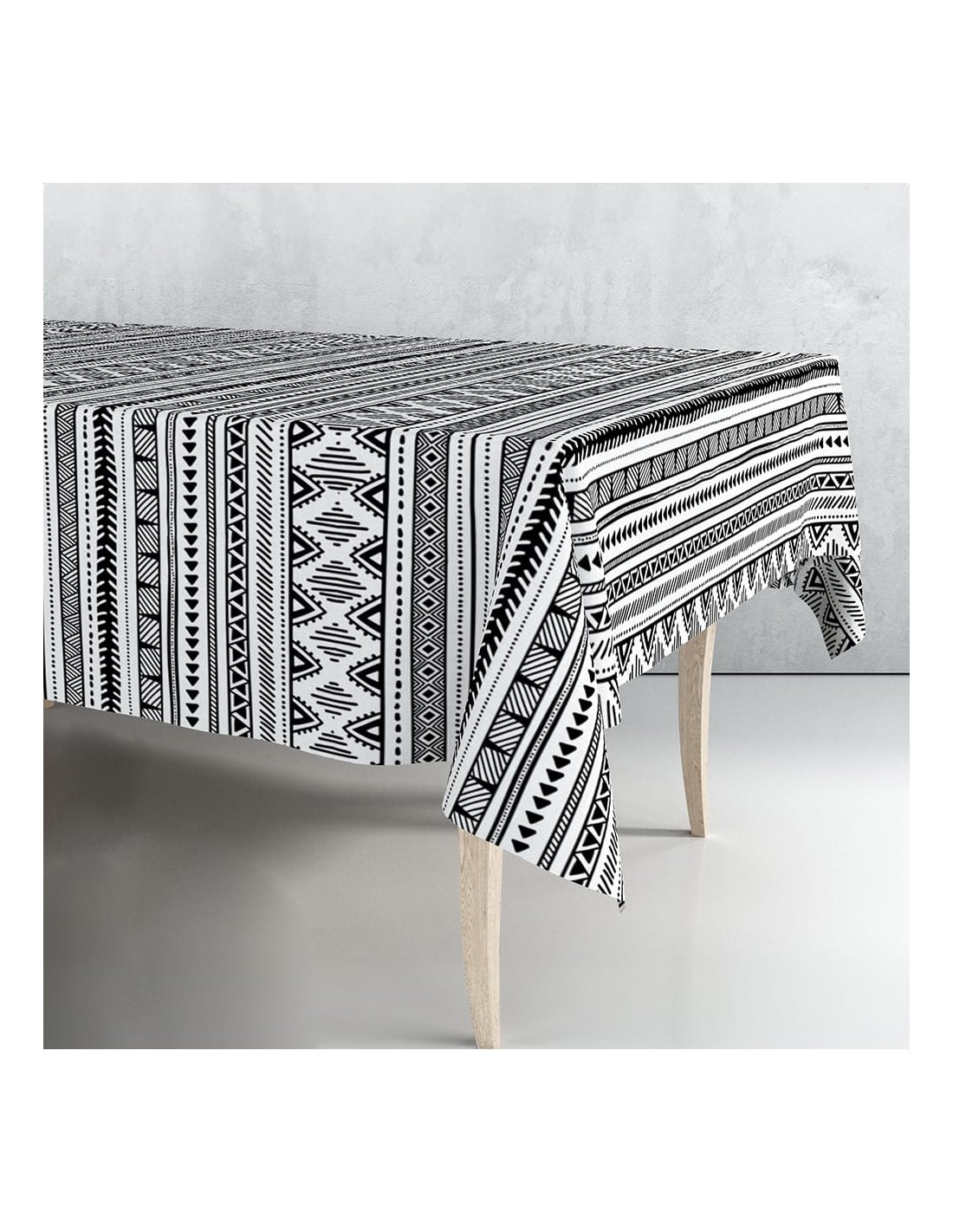Rollo de hule con cenefa blanca y negra 140cm x 25m, mantelería pvc con soporte tst