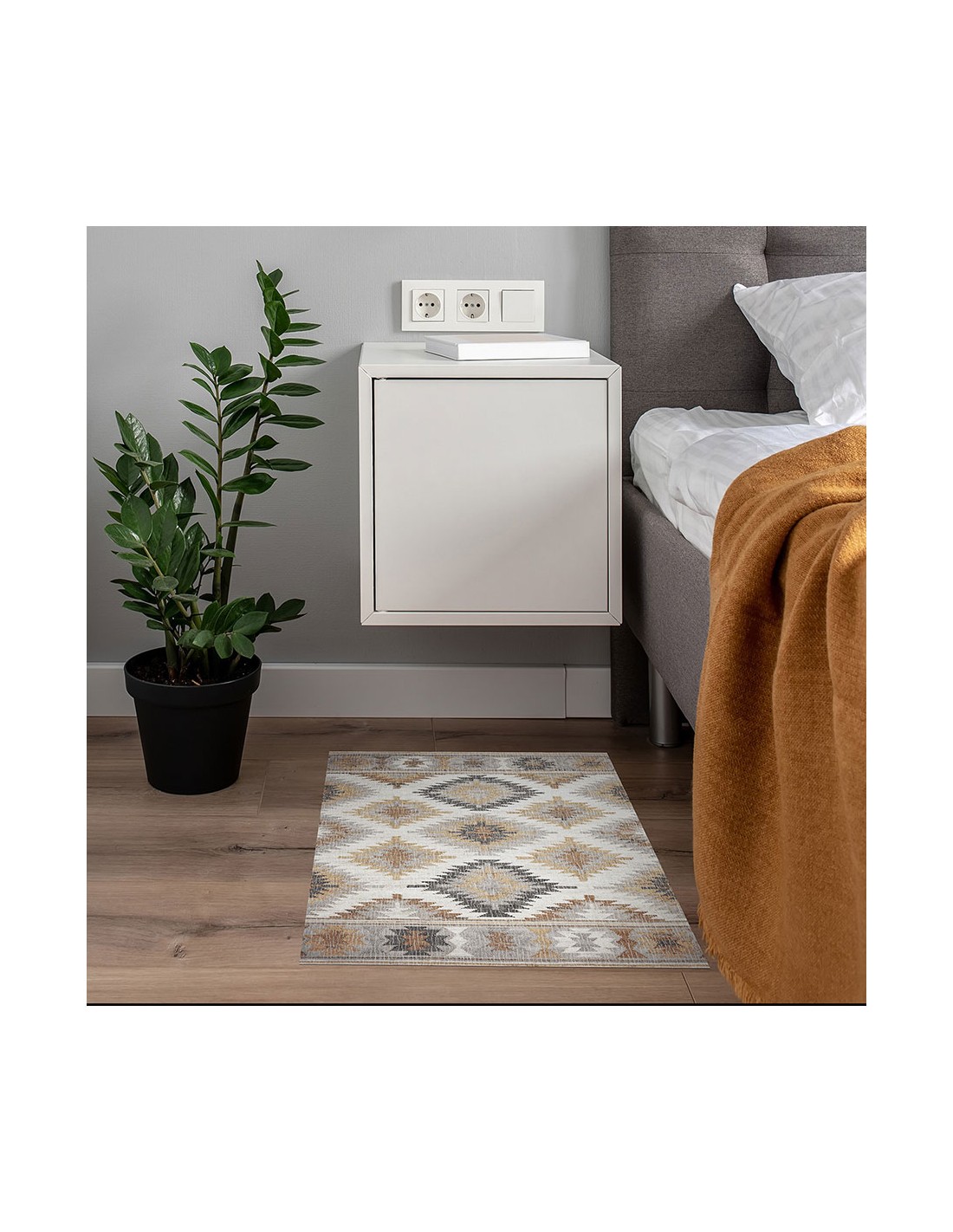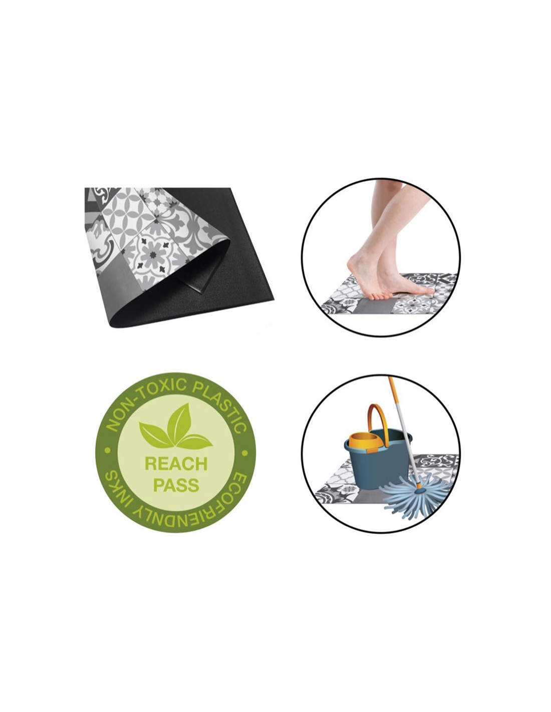 Alfombras vinílica acolchada de espuma con estampado realista de kilims grises. medidas 45 x 75 cm