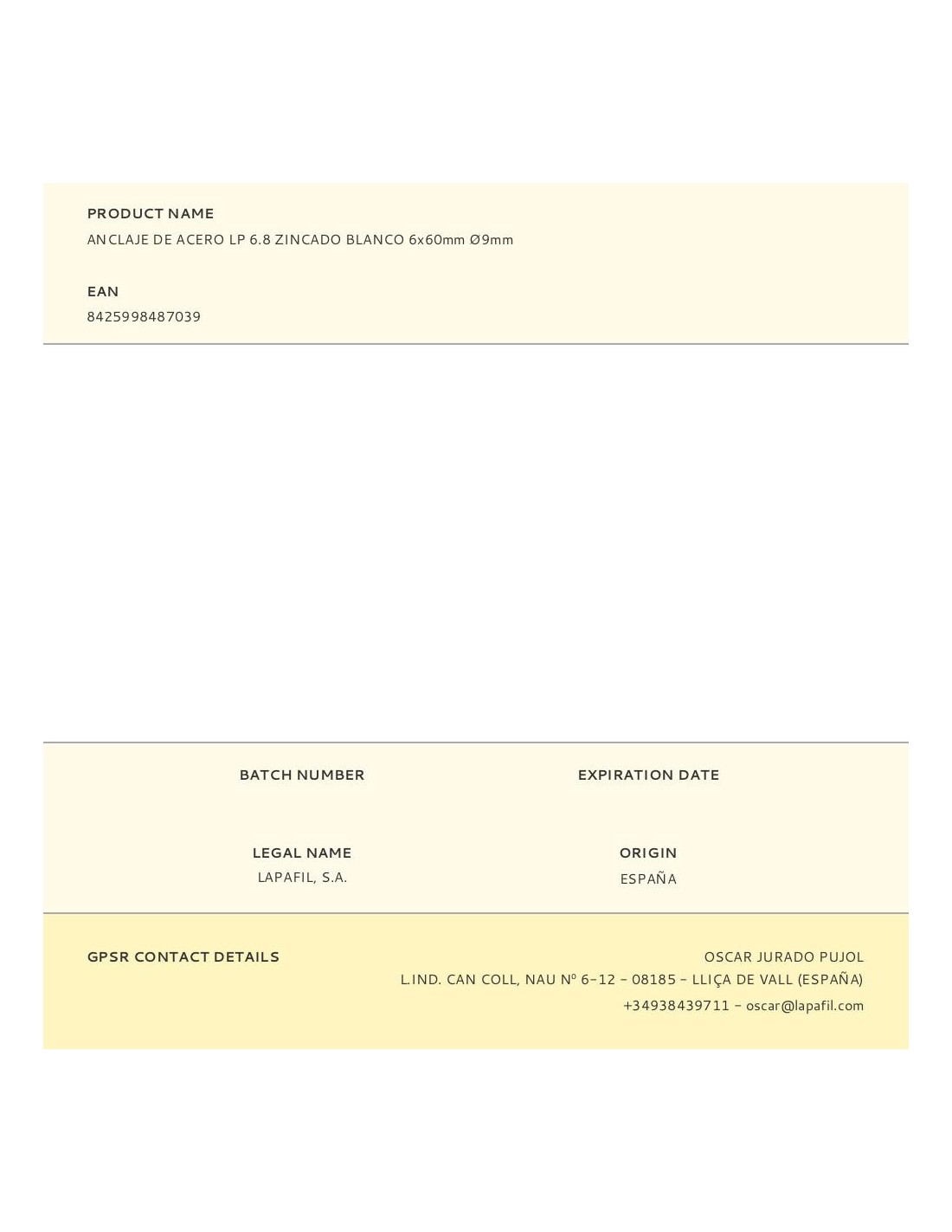 Anclaje de acero lp 6.8 zincado blanco 6x60mm ø9mm