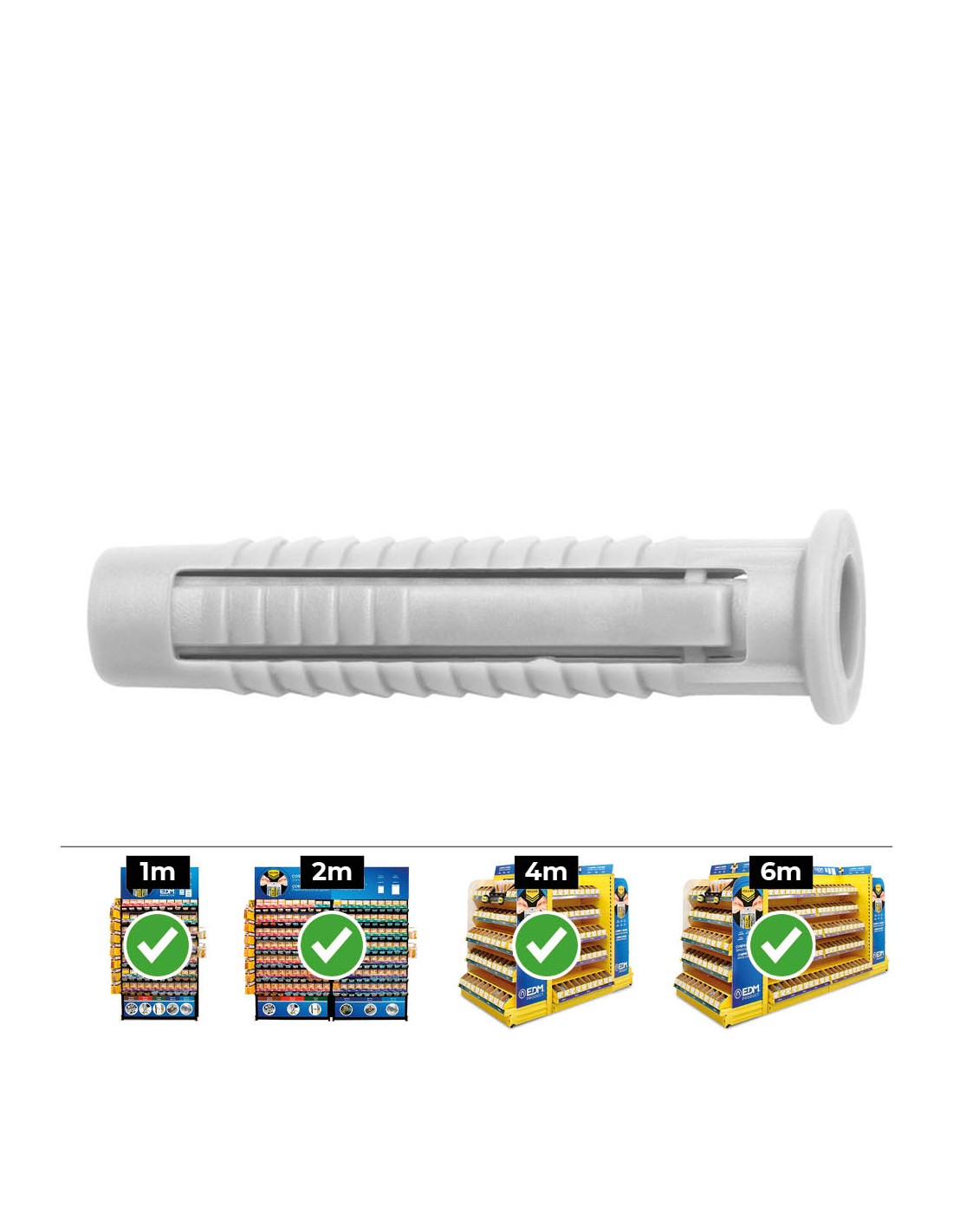 Caja 100 unid. taco fx ø6 mm . apertura lateral para mayor expansion. 4 aletas anti-giro. soporta temperaturas -40°c y +80°c