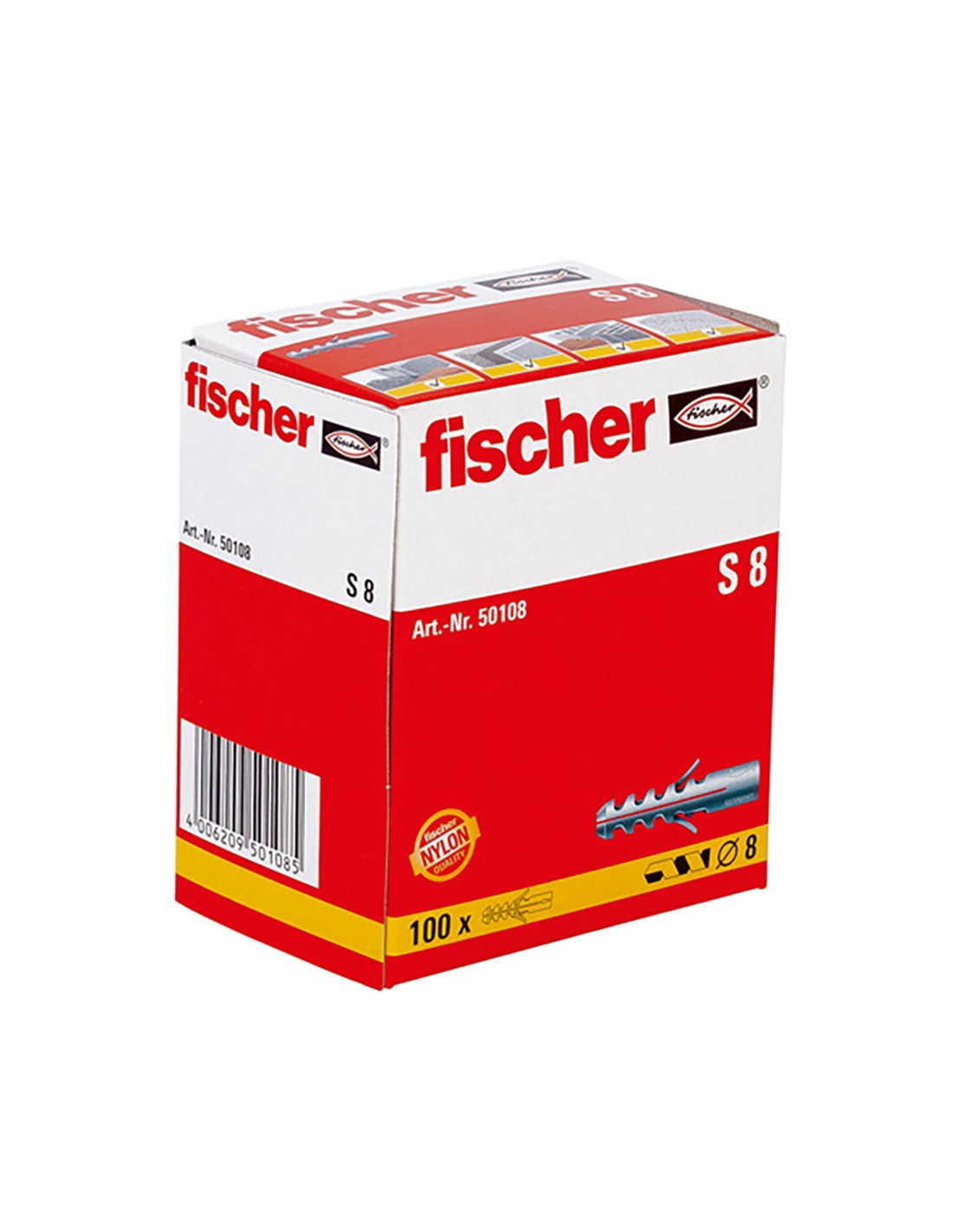 Taco de expansion s-8 mm caja 100 unid. taco de nylon de facil instalacion con 2 vias de expansion. el taco sin reborde es adecuado para instalaciones pre-posicionadas y montajes a traves. insercion simple debido a la facilidad de empuje del taco. la aleta anti-rotacion evita la rotacion dentro del agujero del taladro. esto garantiza un alto grado de seguridad durante la instalacion