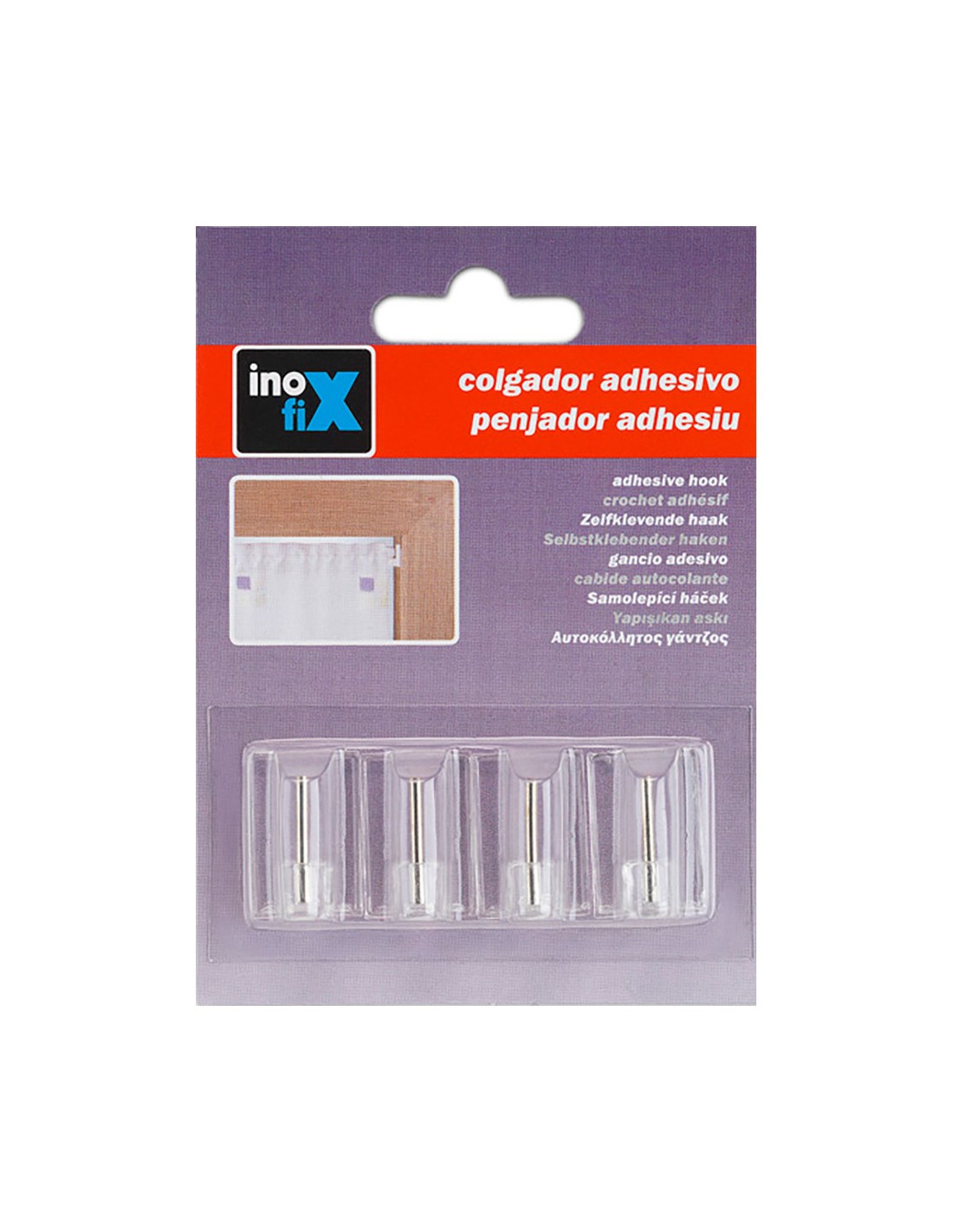 Colgador adhesivo visillos transparente (blister 4 unid.) inofix