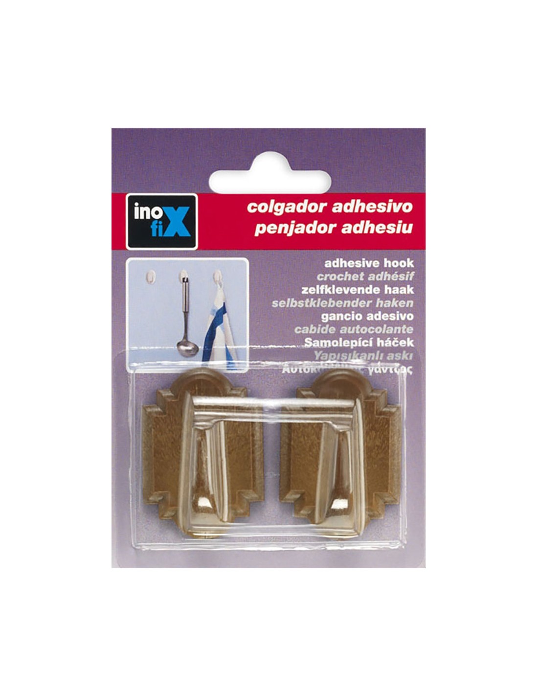 Colgador adhesivo madera (blister 2 unid.) inofix