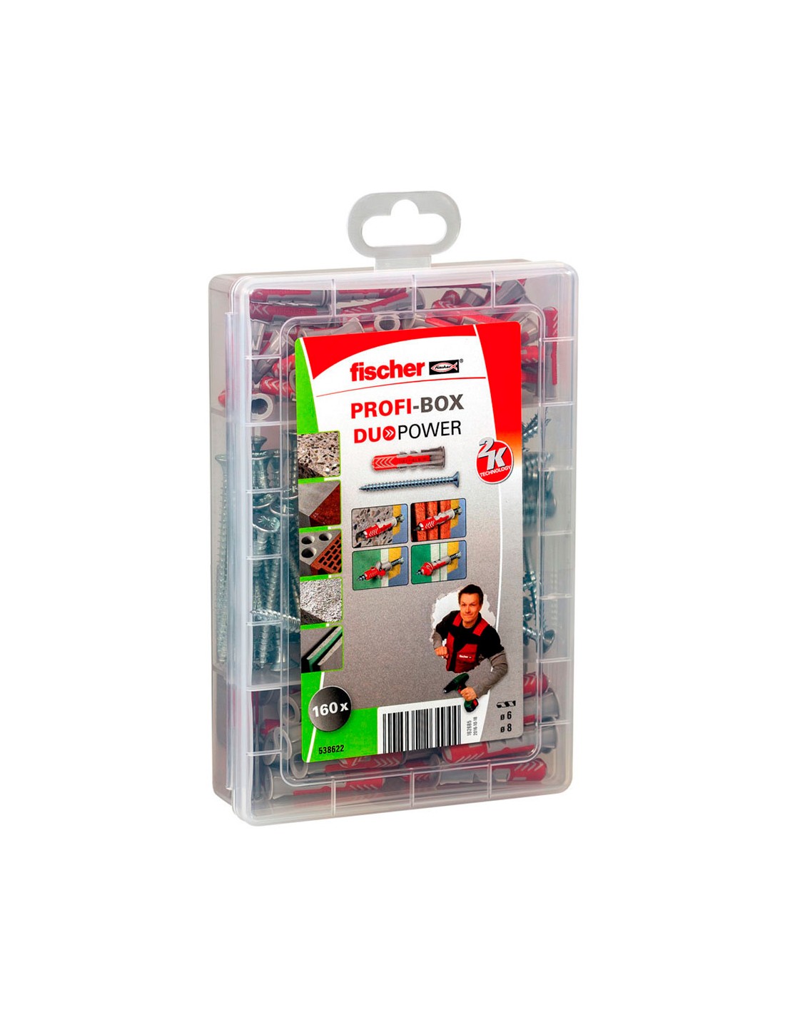 Tacos duopower 6/8 + tornillos. contiene 50 tacos ø6 x 30 mm, 30 tacos ø8 x 40 mm. 50 tornillos de cabeza avellanada y engarce pozi ø4,5 x 40 mm cincados de rosca total y 30 tornillos de cabeza avellanada y engarce pozi ø5 x 55 mm cincados de rosca total. maletín 160 uds