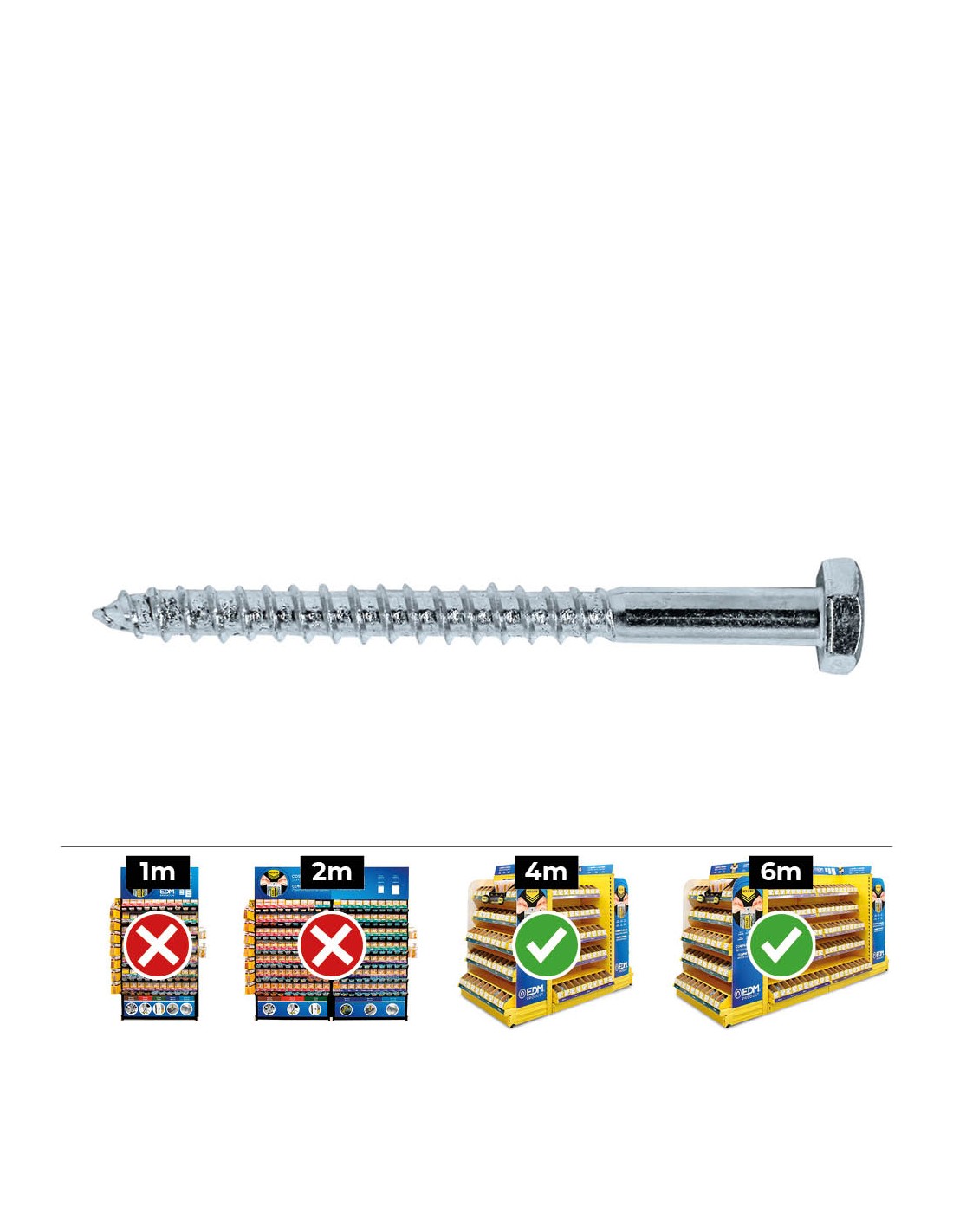➜ Tornillo con rosca para madera y aglomerado.➜ Cabeza hezagonal.➜ Cincado.➜ Materiales de uso: Madera pino, madera fina
