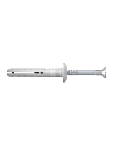 Tacos clavo ø6 x 40 mm / 7 p + tornillos cabeza avellanada ø3,7 x 48 mm, pz2. se compone de un taco de nylon de alta calidad y un tornillo clavo galvanizado. para fijación de regletas eléctricas y construcciones de madera en todos los materiales de construcción interiores. caja 50 uds