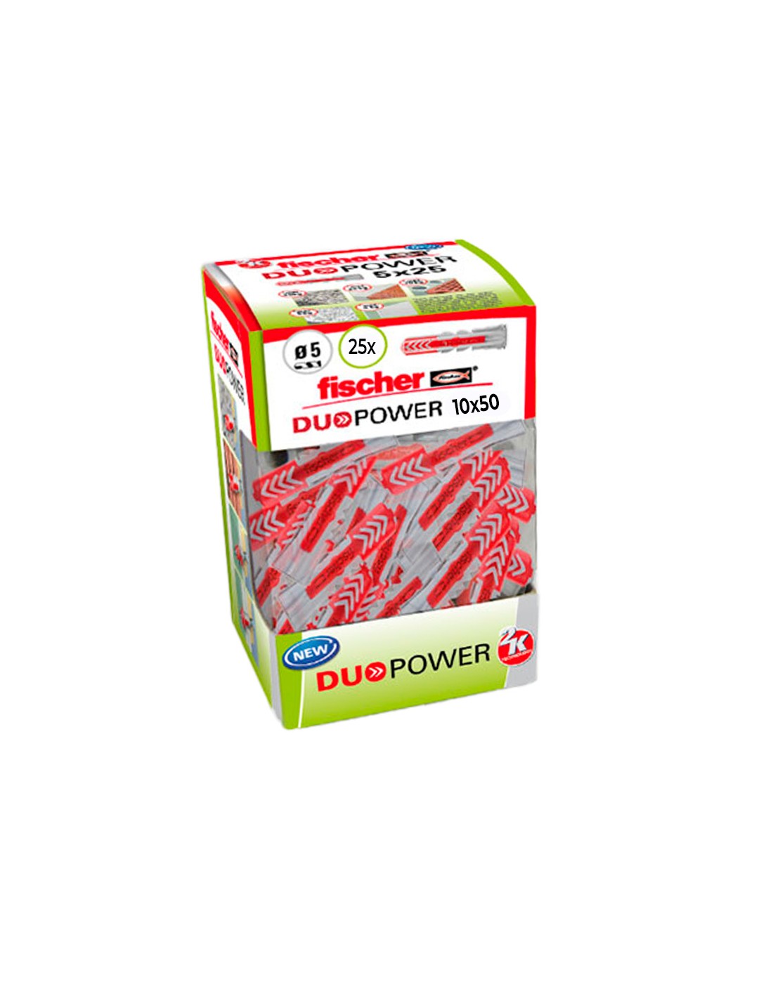 Taco duopower ø10 x 50 mm, 25 unid en formato caja bricolaje. combinación de dos componentes de materiales para un mayor rendimiento.funciones seguras para materiales macizos (expansión) y perforados o placas (bloqueo/anudado). montaje sencillo: el borde estrecho del taco impide que se hunda en la perforación.mejor respuesta posible del taco: se nota que el taco encaja a la perfección. aplicaciones: muebles de televisión, iluminación, estantes, armario con espejo, cuadros, fijación de persianas, raíles de cortinas, fijaciones de lavabos, fijaciones de fontanería y calefacción, instalaciones de baños y servicios, armarios de pared, campanas extractoras etc. materiales: hormigón, ladrillo macizo, hormigón celular, placas y paneles de yeso, piedra natural, paneles aglomerado etc