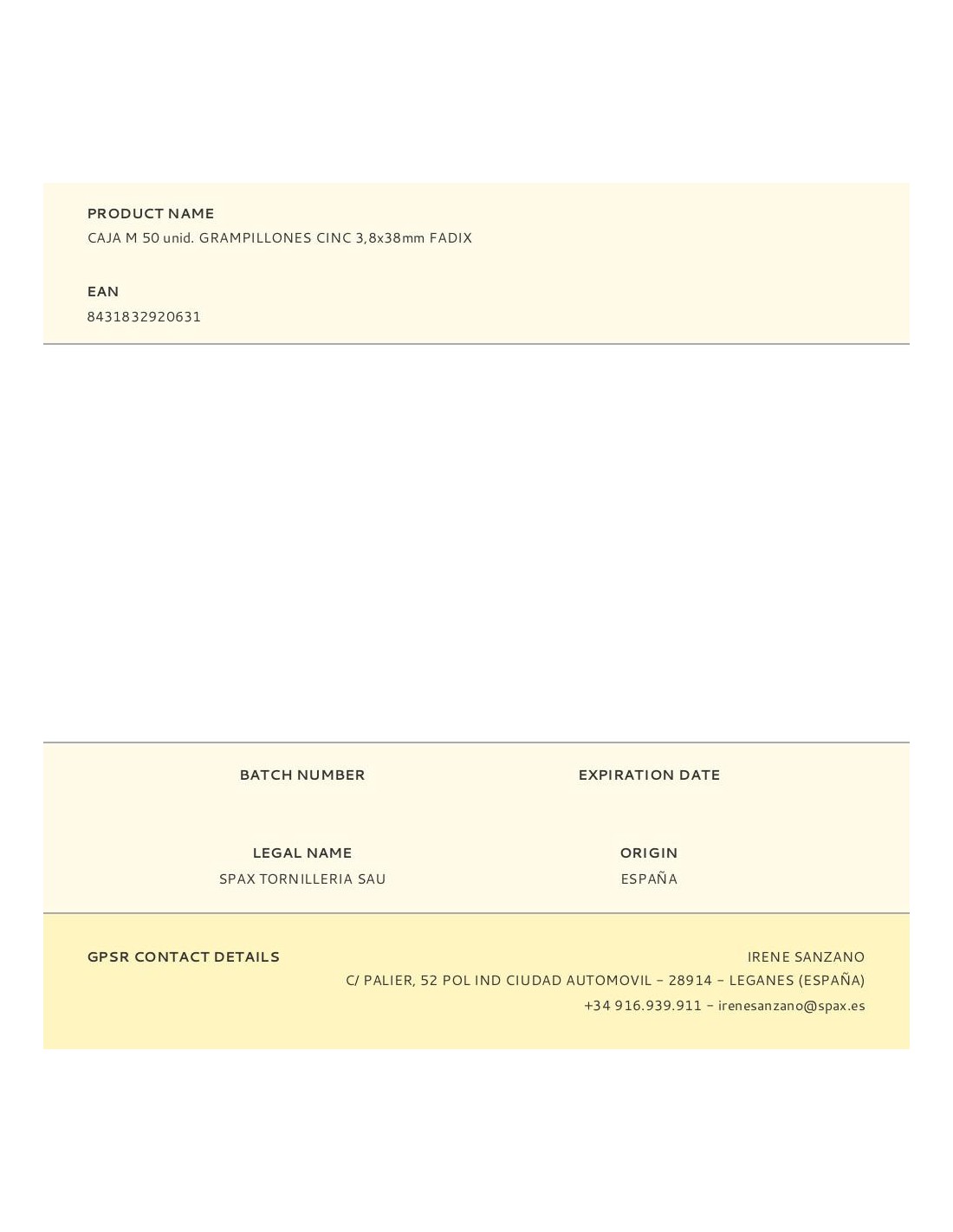 Caja m 50 unid. grampillones cinc 3,8x38mm fadix