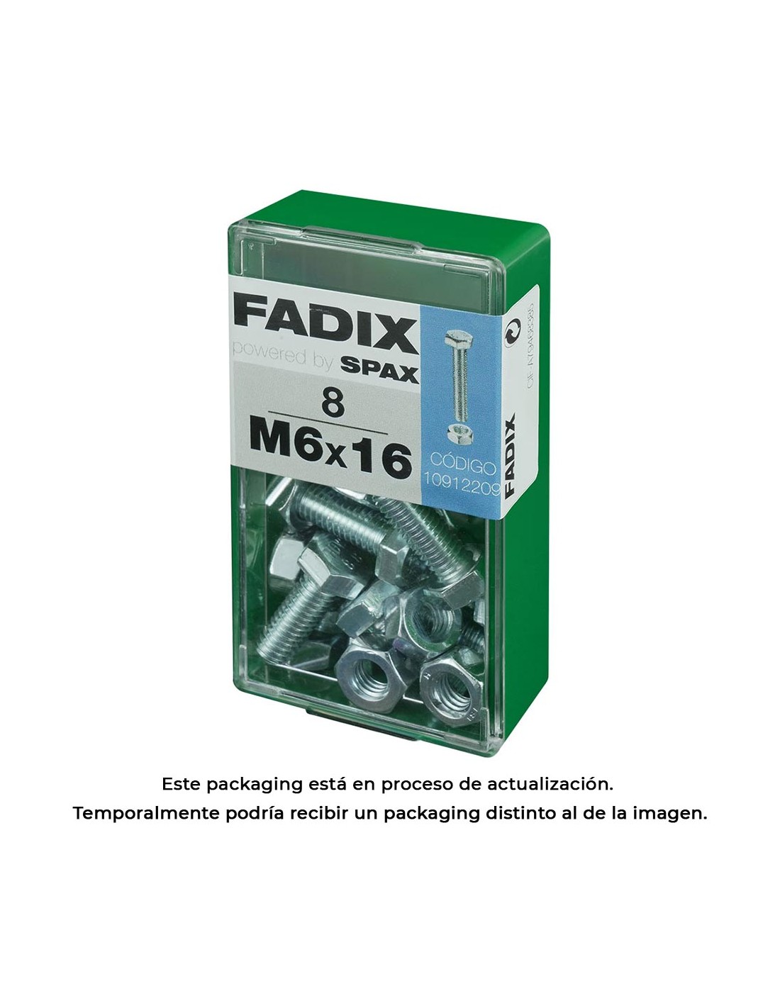 Caja s 8 unid. tornillo metrica cab hex+tuerca cinc m 6x16mm fadix