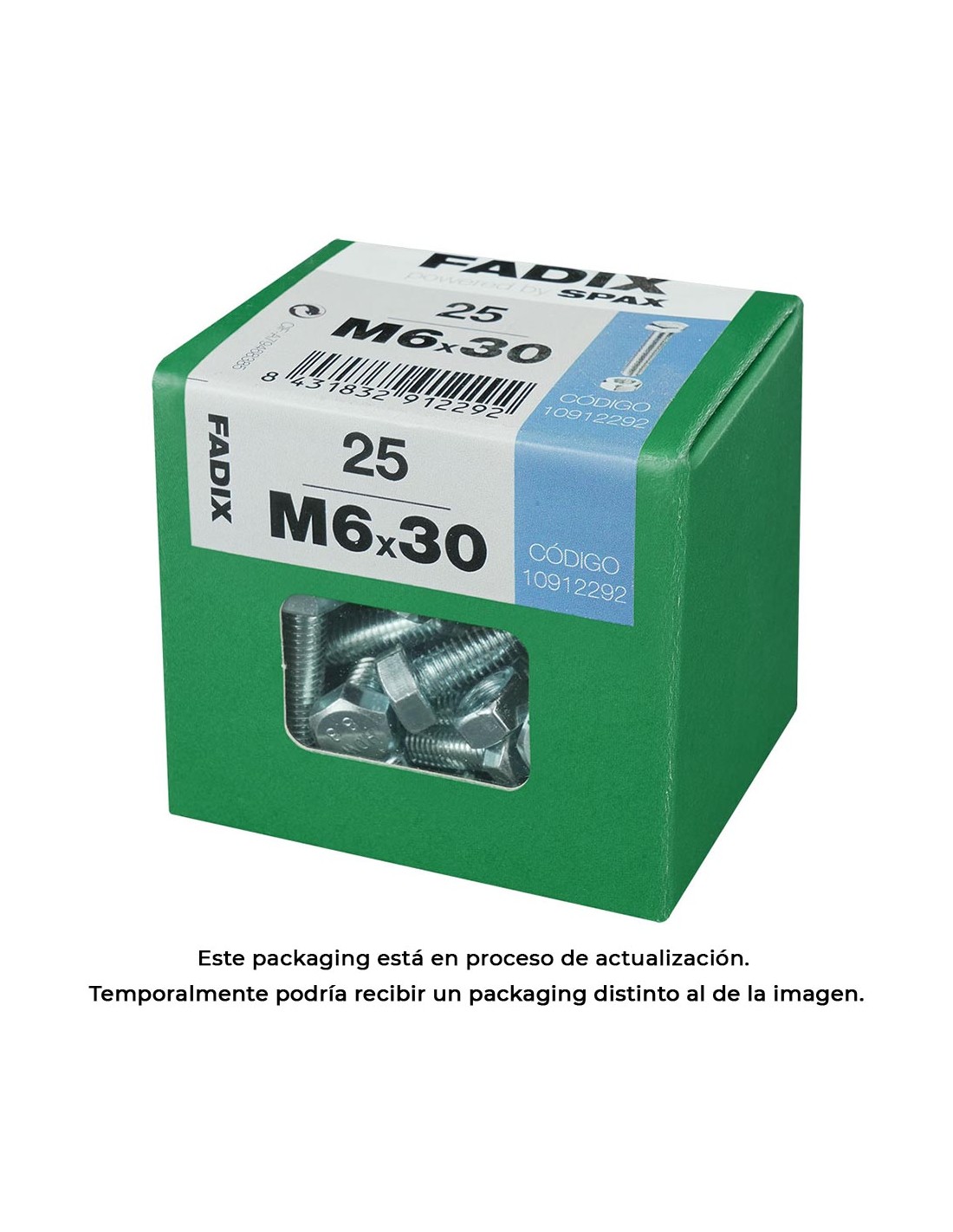 Caja l 25 unid. tornillo metrica cab hex+tuerca cinc m 6x30mm fadix
