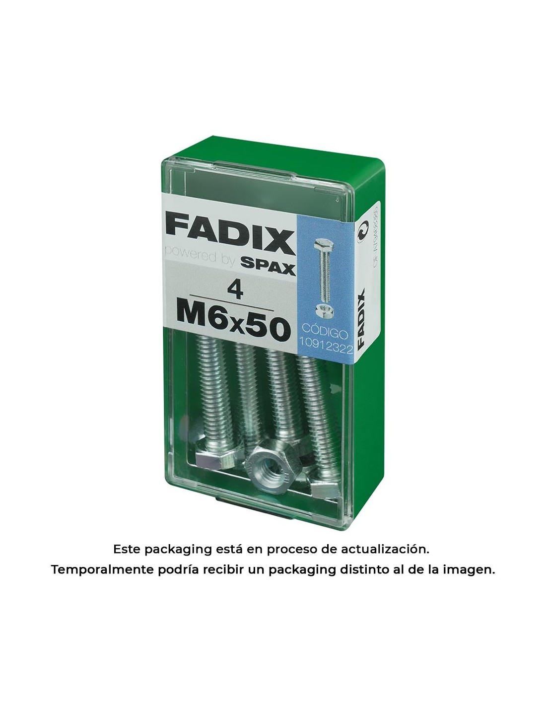 Caja s 4 unid. tornillo metrica cab hex+tuerca cinc m 6x50mm fadix