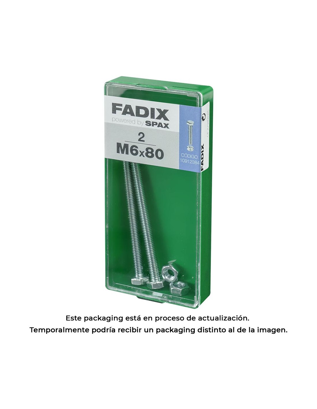 Caja m 2 unid. tornillo metrica cab hex+tuerca cinc m 6x80mm fadix