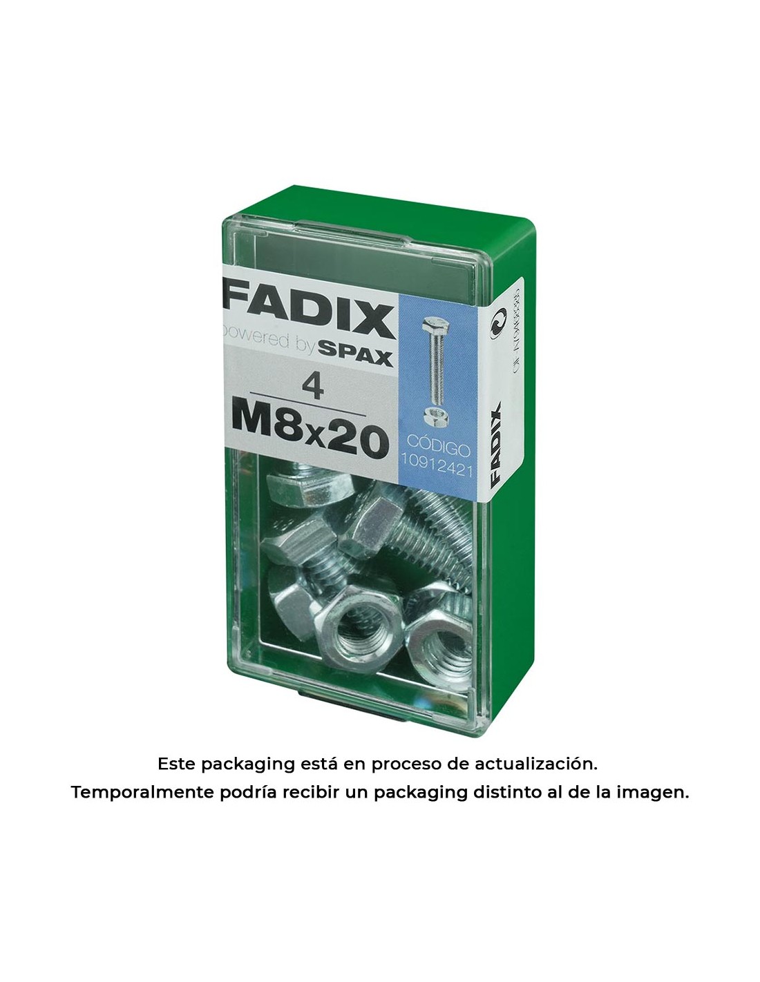 Caja s 4 unid. tornillo metrica cab hex+tuerca cinc m 8x20mm fadix