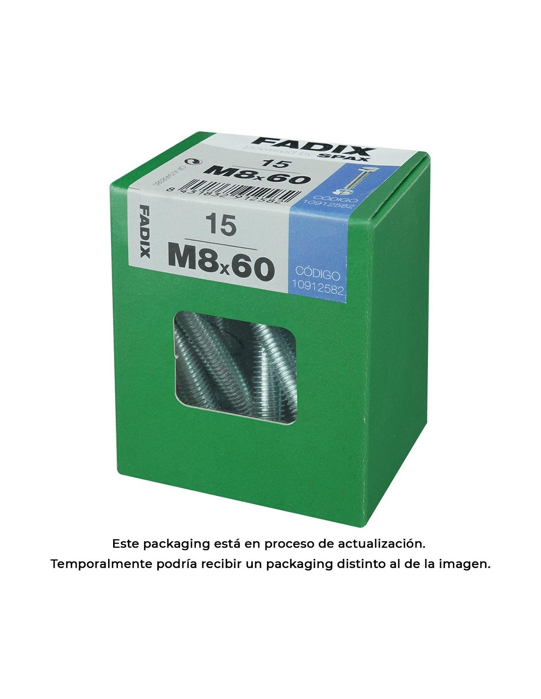 Caja l 15 unid. tornillo metrica cab hex+tuerca cinc m 8x60mm fadix